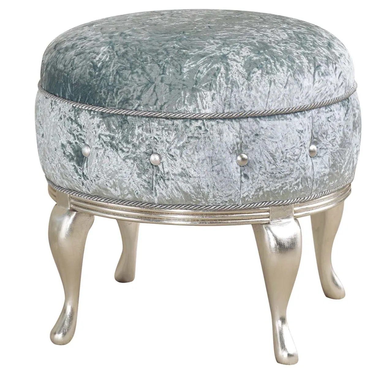 Ispirato all’estetica mediorientale e allo stile occidentale contemporaneo, il poggiapiedi Aladino è un’aggiunta affascinante e invitante a un salotto o a un soggiorno. Caratterizzato da una scintillante finitura a foglia d’argento, il poggiapiedi è rivestito in velluto blu Tiffany e arricchito da bottoni in ecopelle. Il poggiapiedi è realizzato a mano da abili artigiani del Veneto.