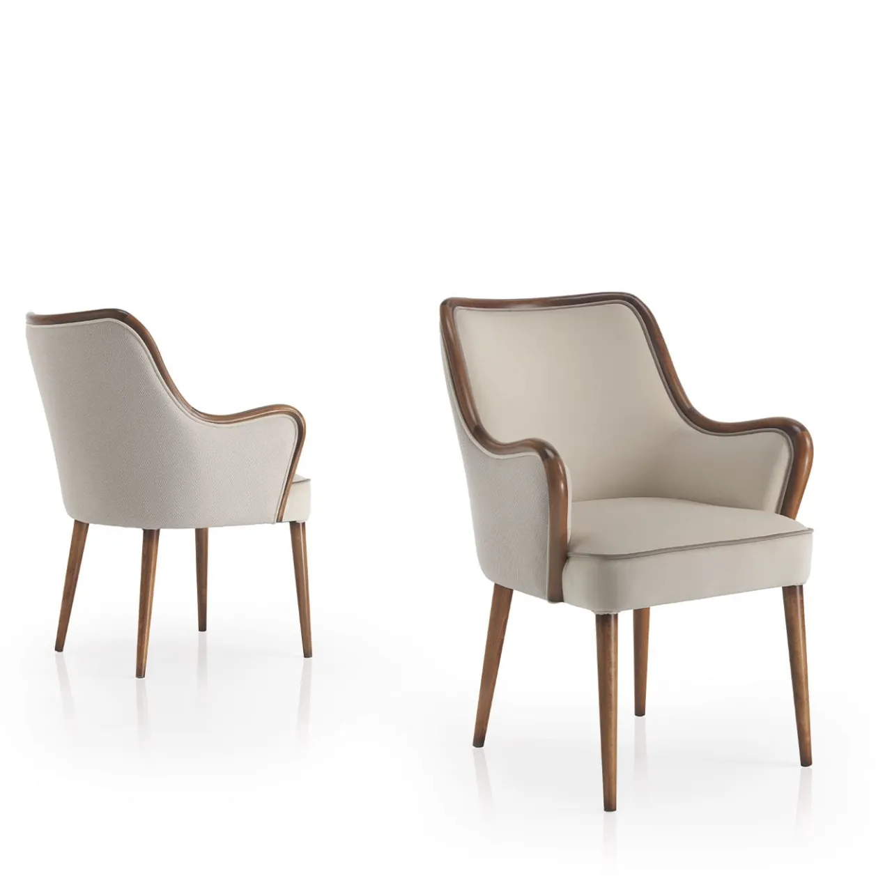 Curve sinuose disegnano la silhouette armoniosa e aggraziata di questa poltrona, un pezzo elegante realizzato in faggio e proposto in una calda finitura noce. Sostenuta da gambe affusolate che ne attestano ulteriormente il carattere moderno, vanta un rivestimento in velluto bianco sporco per una dichiarazione di immancabile raffinatezza in ambienti esclusivi, classici o moderni che siano.