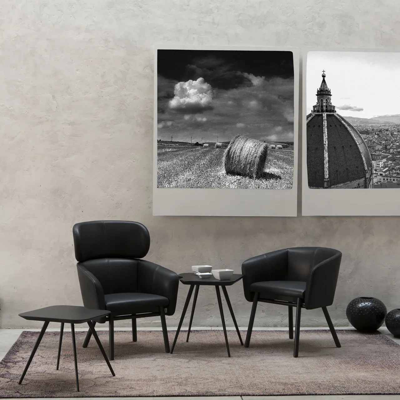 Caratterizzata da minimalismo e design pulito, questa sedia è una versione modulare e più grande della raffinata sedia Balù disegnata da Emilio Nanni. Confortevole ed elegante, presenta una struttura in faggio laccato nero con gambe inclinate e una morbida seduta con braccioli avvolgenti e uno schienale alto e accogliente. L’imbottitura combina poliuretano e dacron. Rivestita in pregiata pelle nera, è disponibile anche in altre finiture e rivestimenti; per maggiori dettagli, rivolgersi al Concierge. Su richiesta, sono disponibili certificazioni per il settore contract e commerciale.
