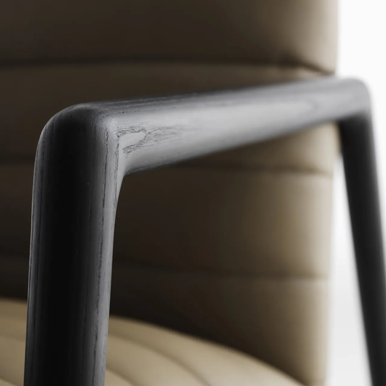 Design sofisticato e funzionale dello Studio Balutto, questa poltrona è ergonomica, comoda e innovativa. Ispirata al design d’interni scandinavo, la sua allure senza tempo è data da una struttura in legno massiccio di frassino con gambe oblique e braccioli in finitura nera, che sostiene una seduta in pelle grigia e cuscini dello schienale imbottiti in poliuretano a memoria di forma per un comfort duraturo. L’altezza della seduta è di 47 cm.