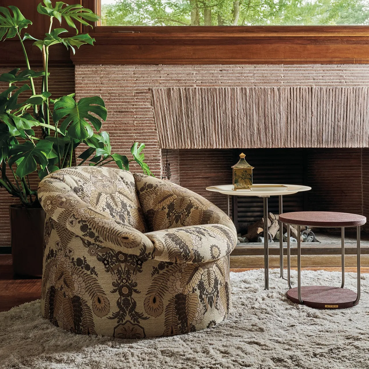 I due temi fondanti della Maison di moda Etro sono le principali peculiarità della poltrona Dahlia, un mobile dalle linee che si ispirano al design milanese. Dahlia è in grado di infondere una nota di armonia e intimità in qualsiasi spazio, perseguendo un’idea di relax avvolgente e confortevole. Poltrona con struttura in legno massello di pioppo e multistrato di pino. Seduta con fasce elastiche e schiuma poliuretanica espansiva ad alta densità a spessore variabile.