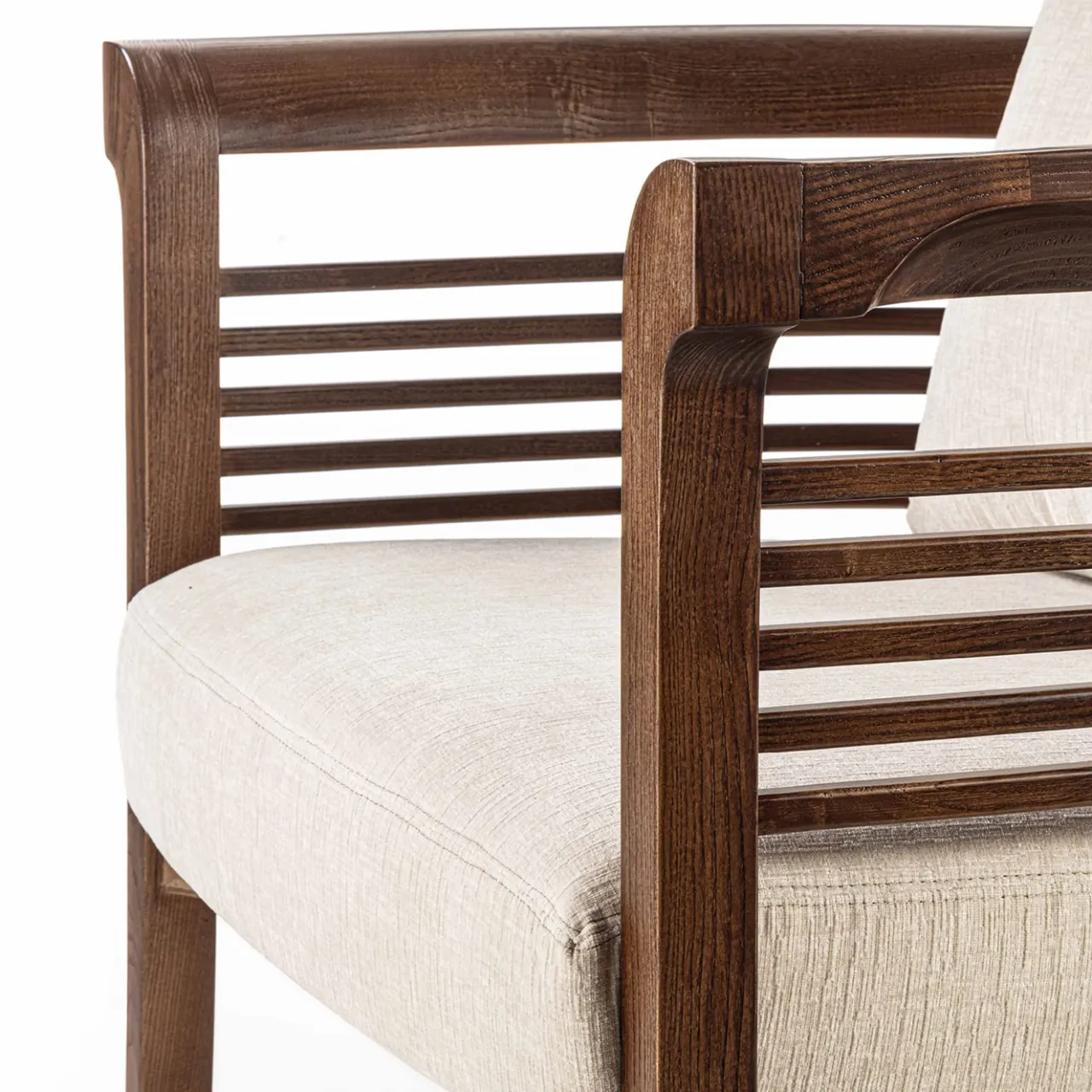 Caratterizzata da un design a coste dall’allure ariosa, questa poltrona in frassino massiccio sarà la controparte ideale di una lampada da terra per elevare un raffinato angolo lettura o uno studio privato. Il massimo comfort è assicurato dalla larghezza generosa e dalla seduta morbida, che qui sfoggia un rivestimento in tessuto dai toni neutri. Su richiesta, sono disponibili diverse opzioni di finitura e rivestimento; per maggiori dettagli, contattare il Concierge.