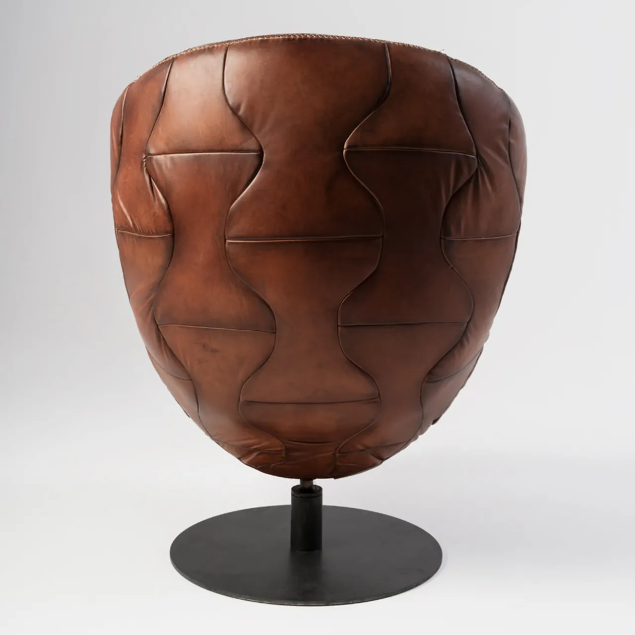 La Poltrona Pelè è realizzata a mano con le stesse tecniche di lavorazione degli antichi palloni da calcio. Rappresentando un omaggio al calciatore di fama mondiale, è realizzata in pelle di crosta, conciata naturalmente, cucita a mano e anticata secondo le tecniche degli antichi artigiani toscani del cuoio. La struttura poggia su una base d’acciaio inciso a mano con un armonioso meccanismo girevole, per un comfort garantito.