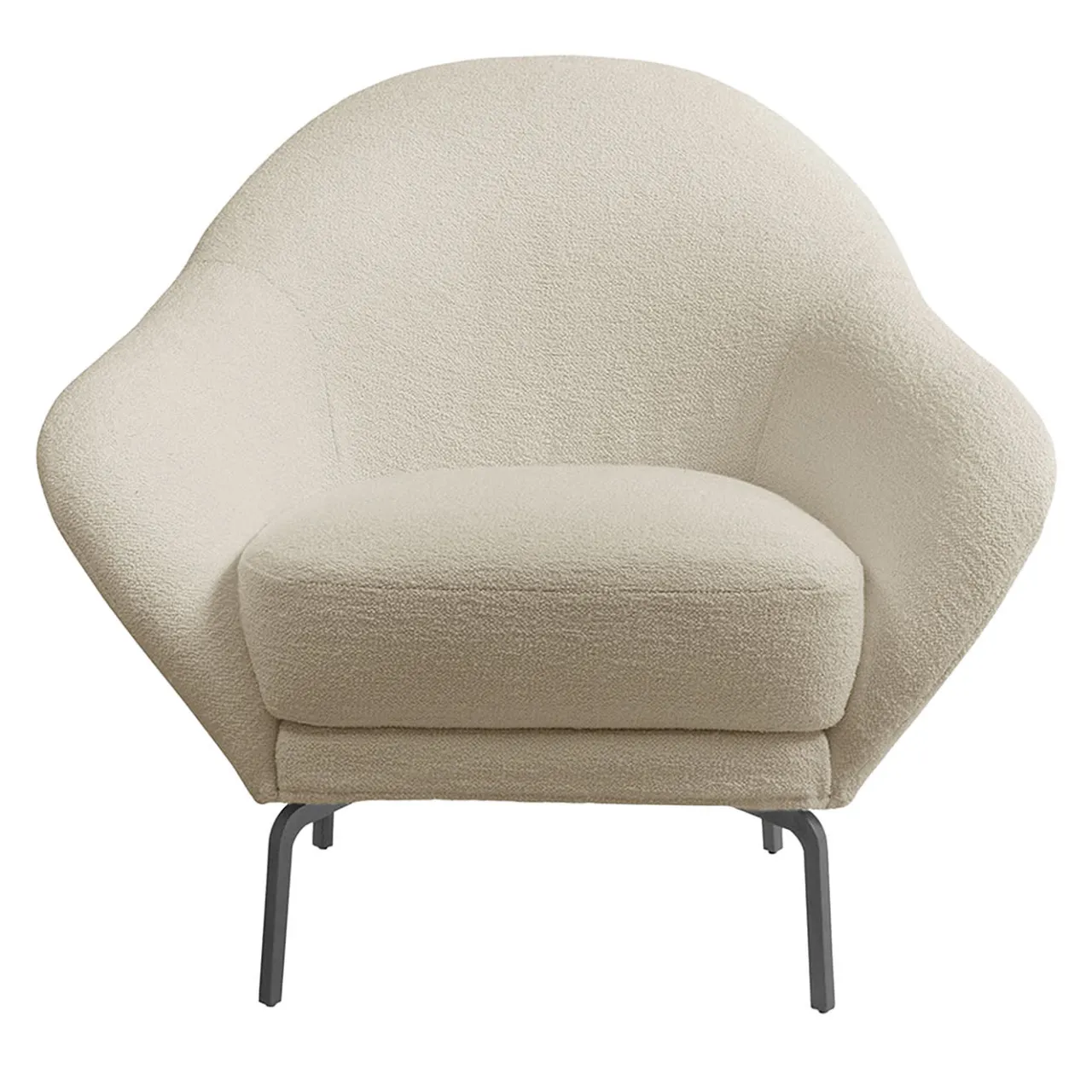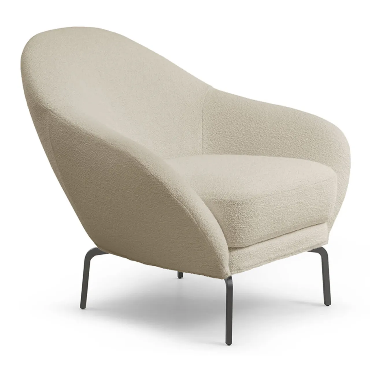 Curve fluide che degradano a formare una silhouette armoniosa e seducente conferiscono a questa poltrona il suo caratteristico fascino femminile. La scocca, che ricorda vagamente il petalo di una rosa, vanta un rivestimento in tessuto bianco brillante (non rimovibile), che sigilla la combinazione di una generosa imbottitura in poliuretano espanso e di una struttura in metallo. I piedini in metallo laccato grigio opaco completano il design.