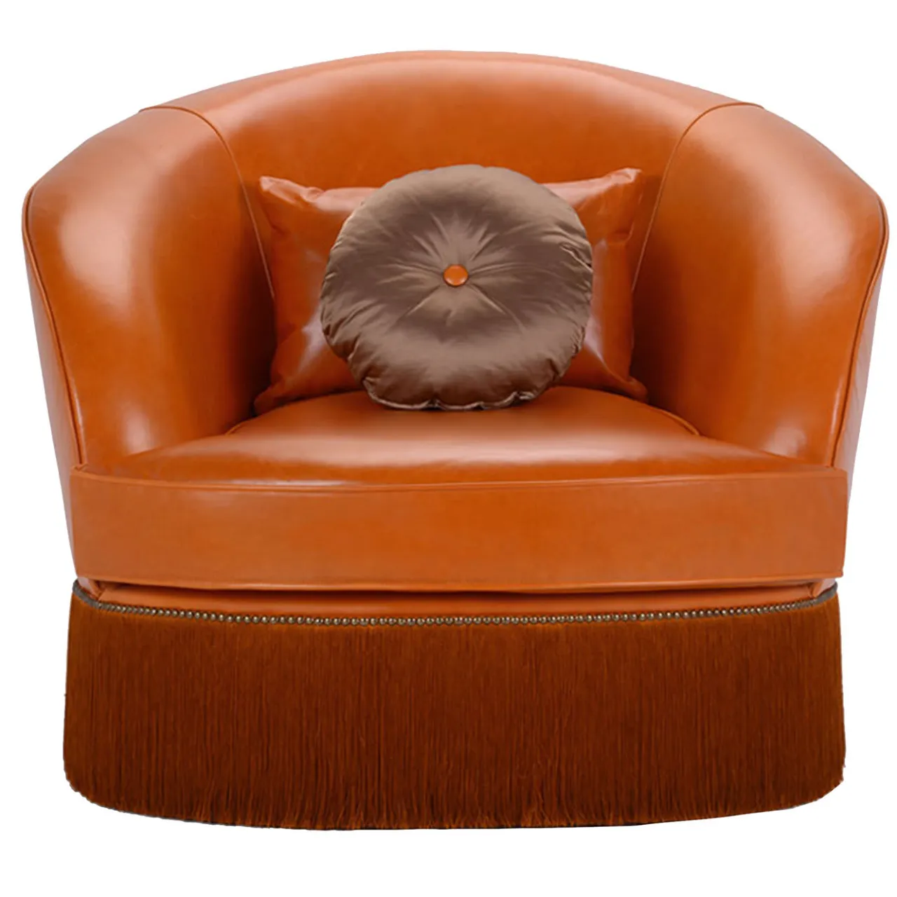 L’estetica seducente di questa grande poltrona si ispira a Dione, dea madre di Afrodite nell’antica mitologia greca. Una preziosa frangia rosso scuro sottolinea la base circolare, il cui profilo è rispecchiato dalla seduta riccamente imbottita e dallo schienale curvo. Entrambi sono rivestiti in pregiata pelle rossa cinese, per creare una texture estremamente piacevole che offre il massimo comfort insieme agli eleganti cuscini decorativi in dotazione.
