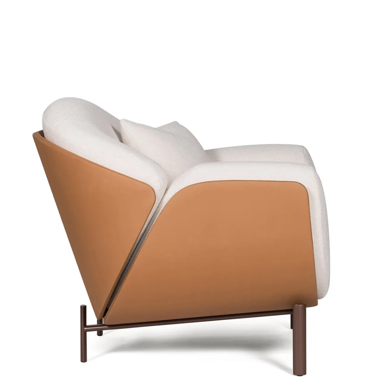 Haima’ incarna l’artigianato italiano con la sua elegante scocca curva ispirata a un tenero abbraccio. Ogni elemento scorre senza soluzione di continuità: dallo schienale ai braccioli, ogni dettaglio è realizzato per garantire il massimo comfort. Il pouf Haima’ completa perfettamente la poltrona, offrendo un relax senza pari. Caratterizzato da scocca in similpelle, cuscini imbottiti e struttura in acciaio verniciato a polvere, questo progetto di Maryam Al Suwaidi è un’armonia di stile e funzionalità.