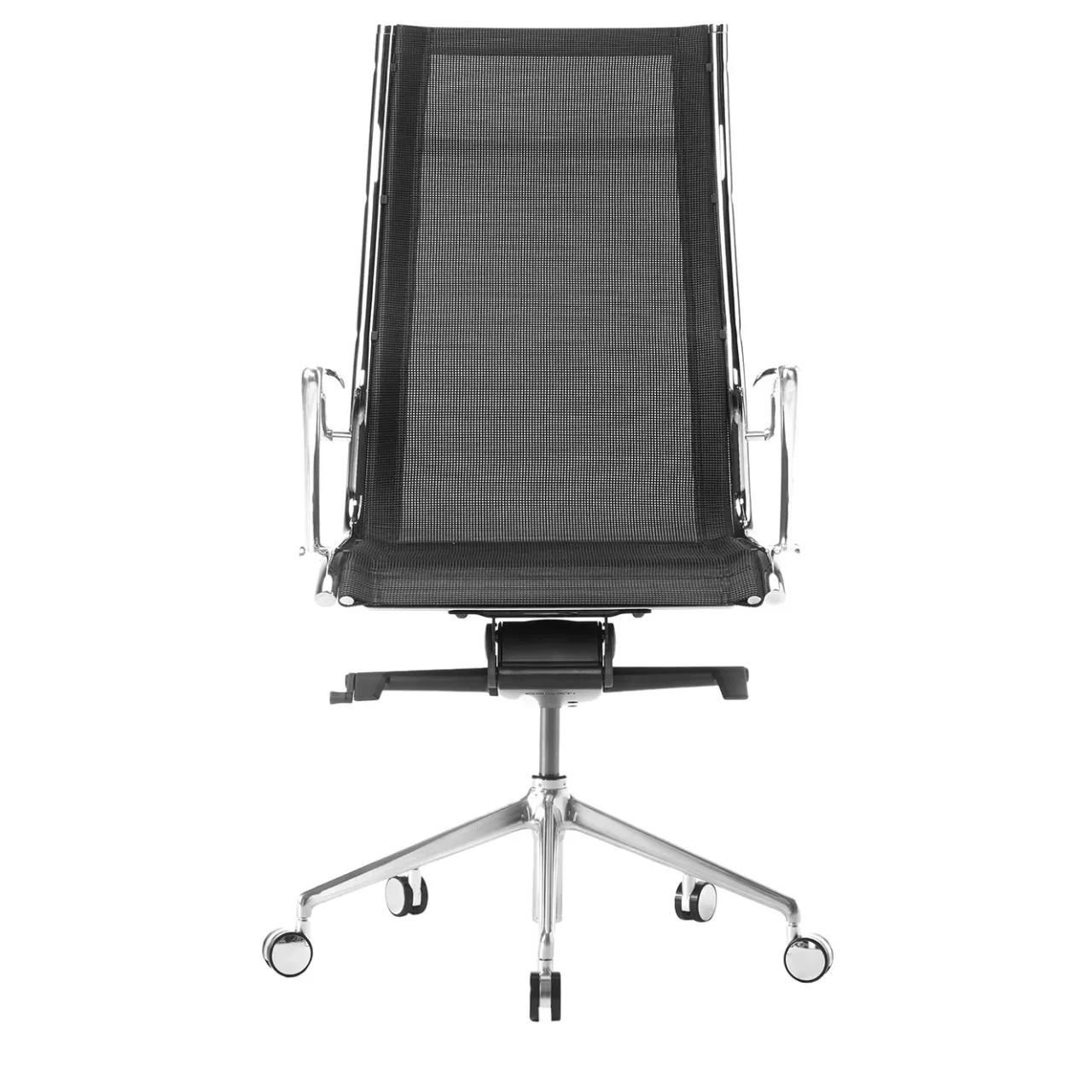 Questa poltrona direzionale imbottita è caratterizzata da uno schienale medio completamente a rete e da una base a 5 razze, che può essere girevole e muoversi su e giù. È arricchita da eleganti braccioli in alluminio.
