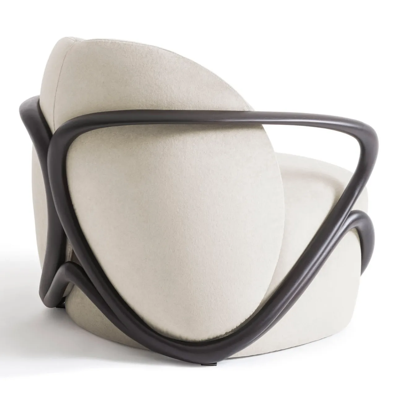 Caratterizzata da curve dinamiche e da una generosa imbottitura, questa poltrona è un invito al puro relax. La struttura, scolpita in noce Canaletto tinto marrone scuro, è un’elegante danza di linee fluide che abbracciano il corpo. Il sedile, sorretto da un nucleo in barre d’acciaio, è avvolto da una ricca imbottitura in poliuretano espanso a freddo, offrendo comfort e sostegno ottimali. Il tutto è rivestito in un velluto bianco setoso dall’aspetto nobile, realizzato in 100% cotone pettinato e ritorto. Per opzioni in pelle, si prega di contattare il nostro Concierge.
