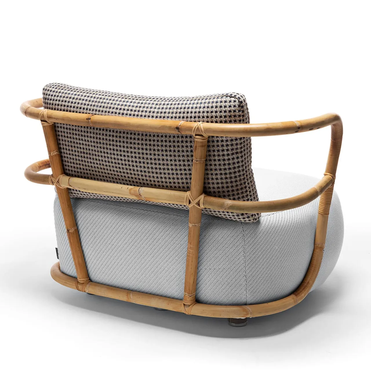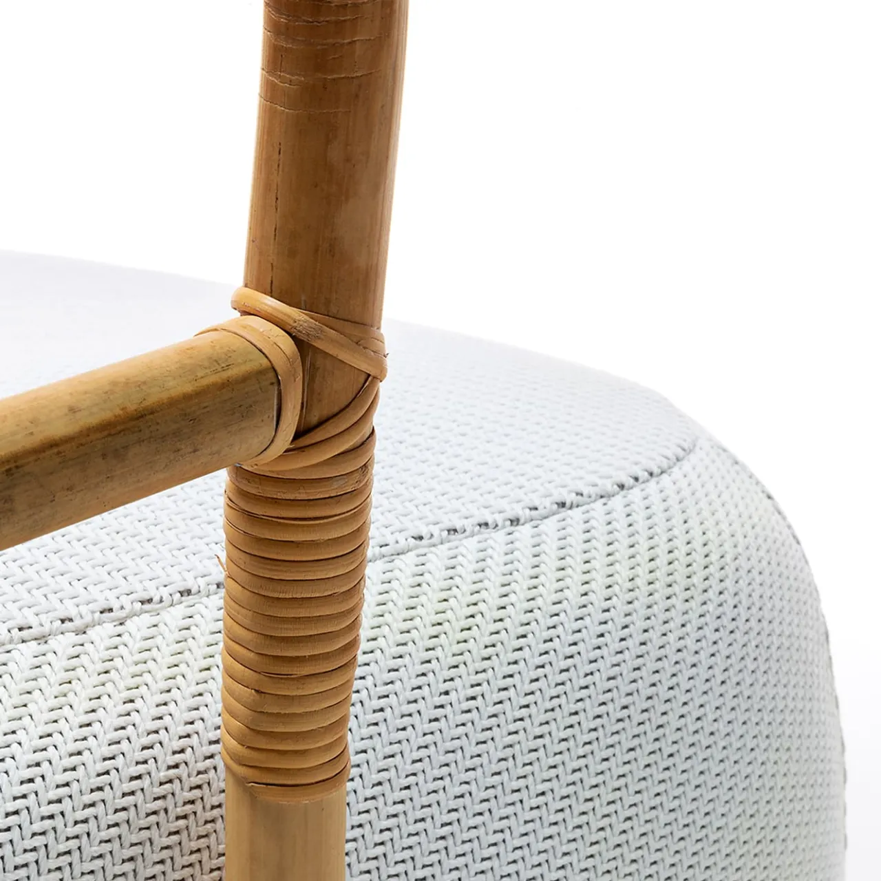Linee morbide e ispirate alla natura definiscono lo straordinario design di questa splendida poltrona, parte della collezione Jungle di Massimo Castagna. Rivestita in tessuto bianco, la seduta morbidamente imbottita presenta linee arrotondate che si uniscono elegantemente al profilo liscio dello schienale in canna di bambù. I cuscini sono inclusi nell’acquisto. Si consiglia una copertura per esterni per proteggere il pezzo quando viene lasciato all’aperto; per maggiori dettagli, contattare il Concierge. Personalizzabile su richiesta. Se i prodotti vengono collocati completamente all’esterno, si consiglia l’acquisto di un copriletto a prezzo maggiorato. Contattare il Concierge per ulteriori informazioni e opzioni.