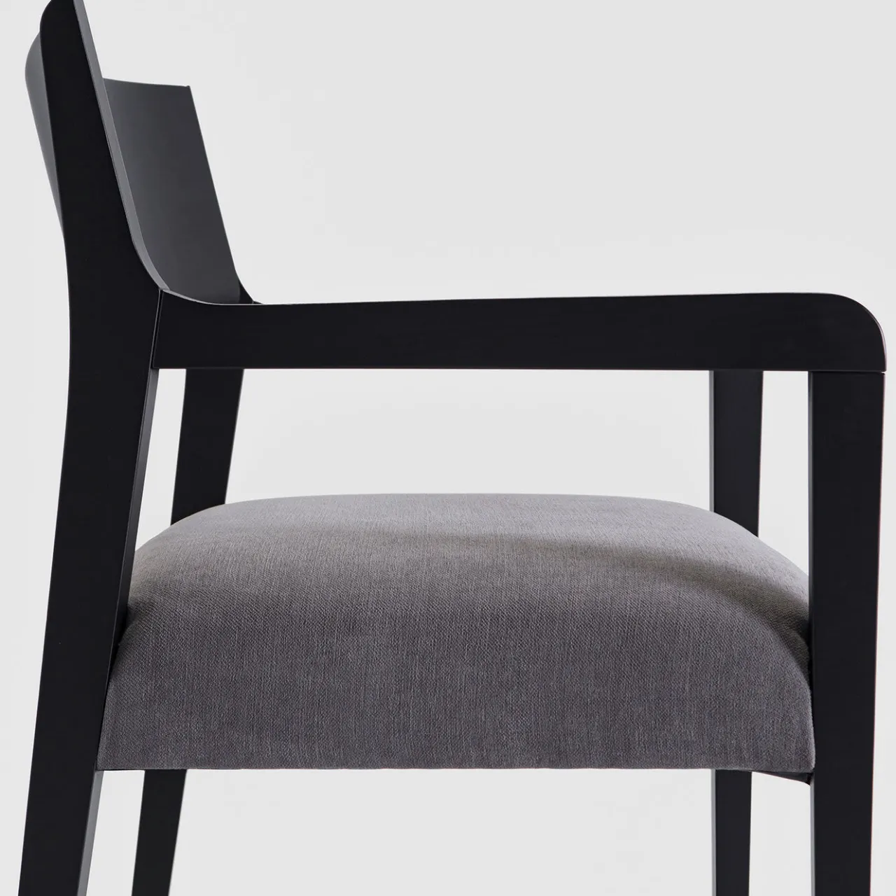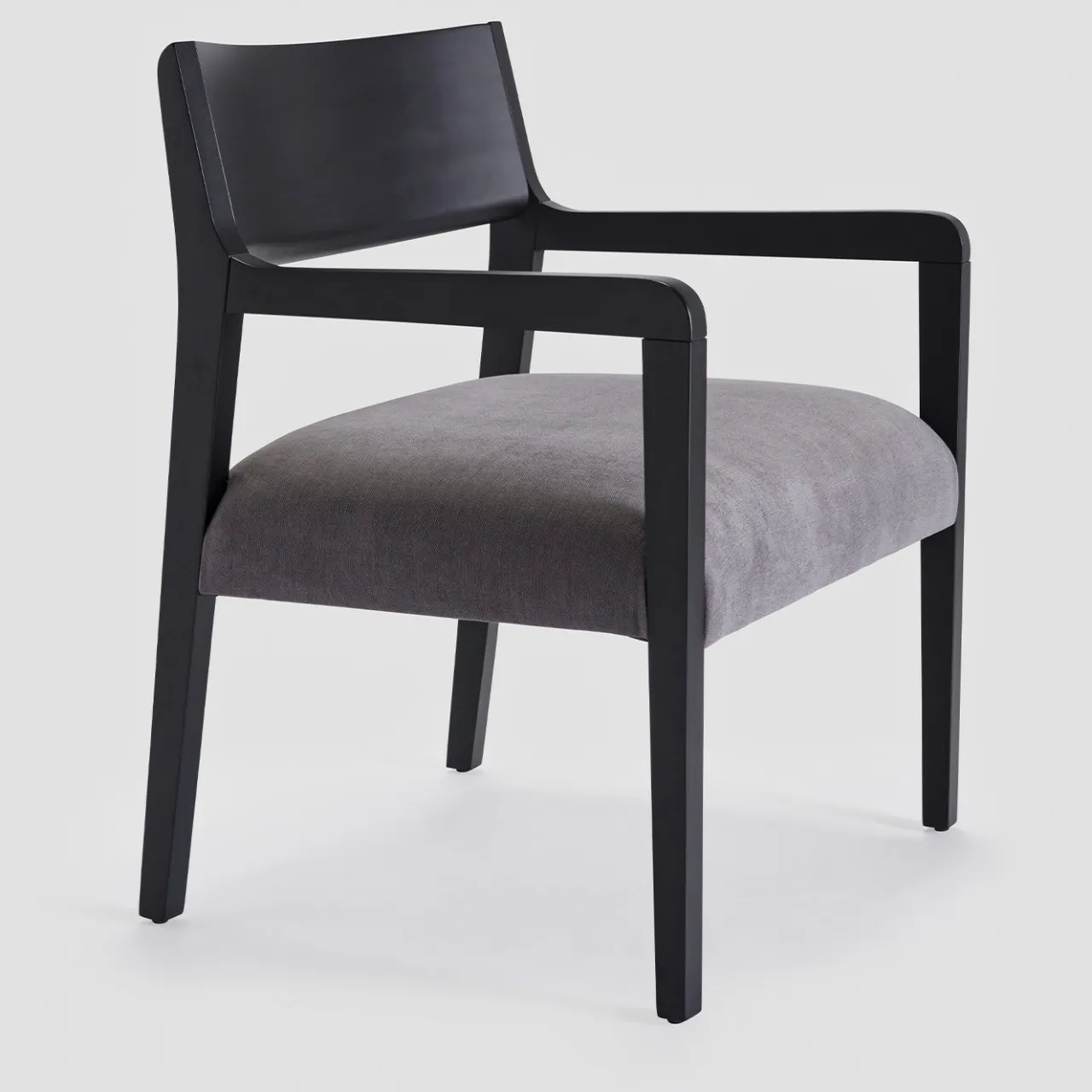 Parte di una raffinata serie di soluzioni di seduta pulite ed essenziali per arredamenti moderni, questa poltrona lounge sarà una splendida aggiunta in interni sia privati che commerciali. Intramontabile e versatile, poggia su una struttura in faggio massiccio laccato nero, composta da quattro gambe sottili ma robuste, un sedile ergonomico e uno schienale aperto. La seduta è morbidamente imbottita e rivestita in tessuto grigio. Il rivestimento è disponibile in un’ampia gamma di tessuti, pelli o ecopelli su richiesta, chiedendo al Concierge le opzioni di personalizzazione.
