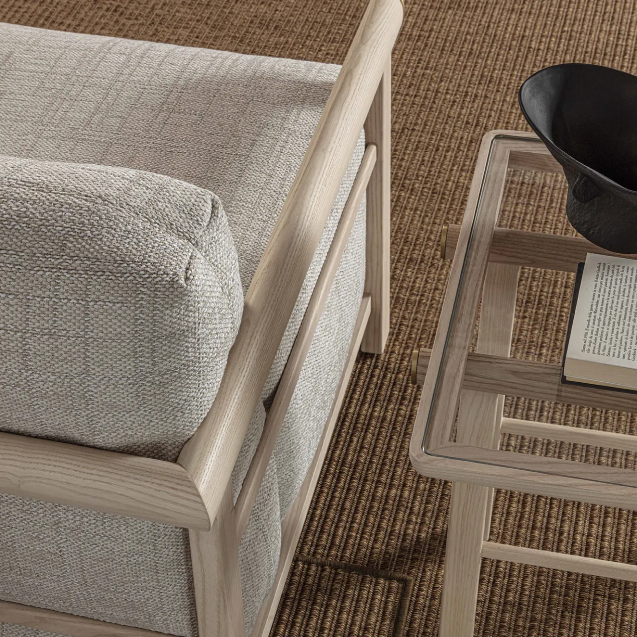 La poltrona Heiko presenta linee pulite e precise nel suo telaio in legno massello, armoniosamente mescolandosi con la morbidezza dei suoi cuscini invitanti. Questo giusto intreccio di linee e materiali crea uno spazio ben definito e accogliente per il relax. L’intaglio intricato e l’impeccabile artigianato del legno rendono la poltrona Heiko un pezzo d’arredo che migliora qualsiasi ambiente con la sua presenza elegante e senza tempo.