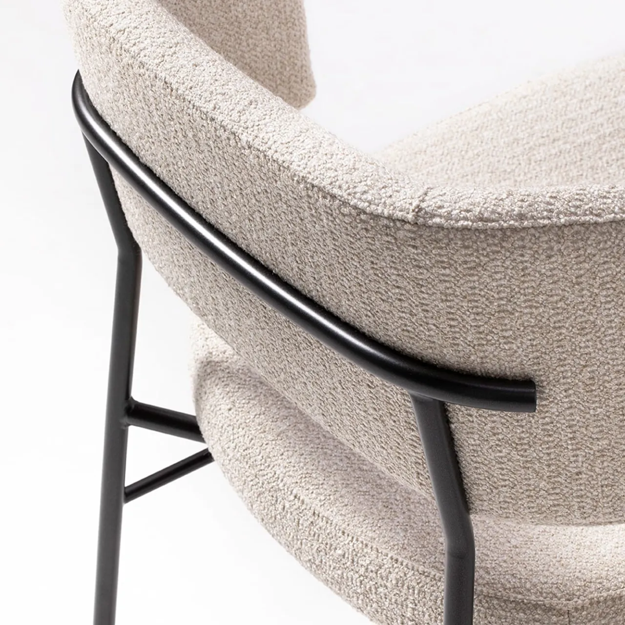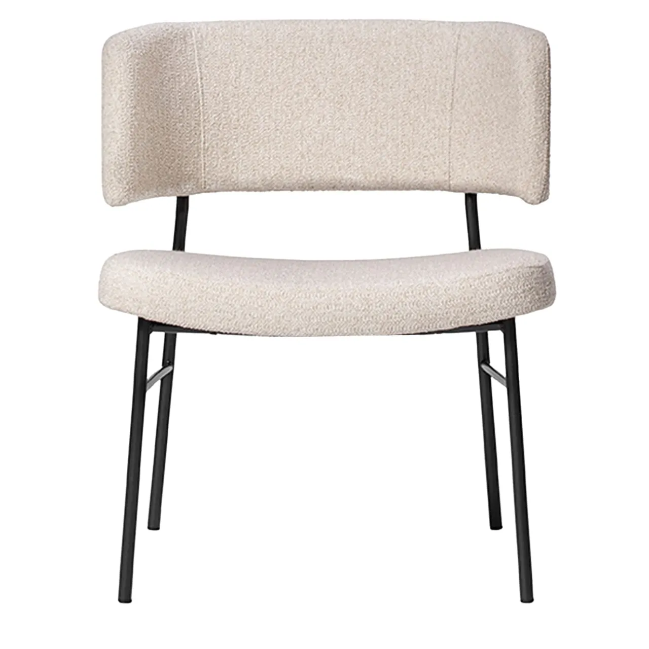 Sentirsi viziati anche quando si è seduti in uno spazio ristretto è l’esperienza che questa poltrona lounge promette al primo sguardo grazie al suo design avvolgente ed ergonomico. Nonostante il rigore della sua sottile struttura in metallo laccato nero, il sedile curvo e lo schienale avvolgente sfoggiano una generosa imbottitura, infine sigillata da un luminoso rivestimento in tessuto bianco (cat. E Kobe Axium FR01) per un maggiore comfort.