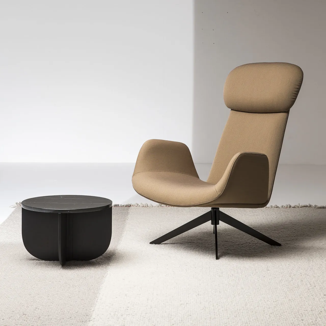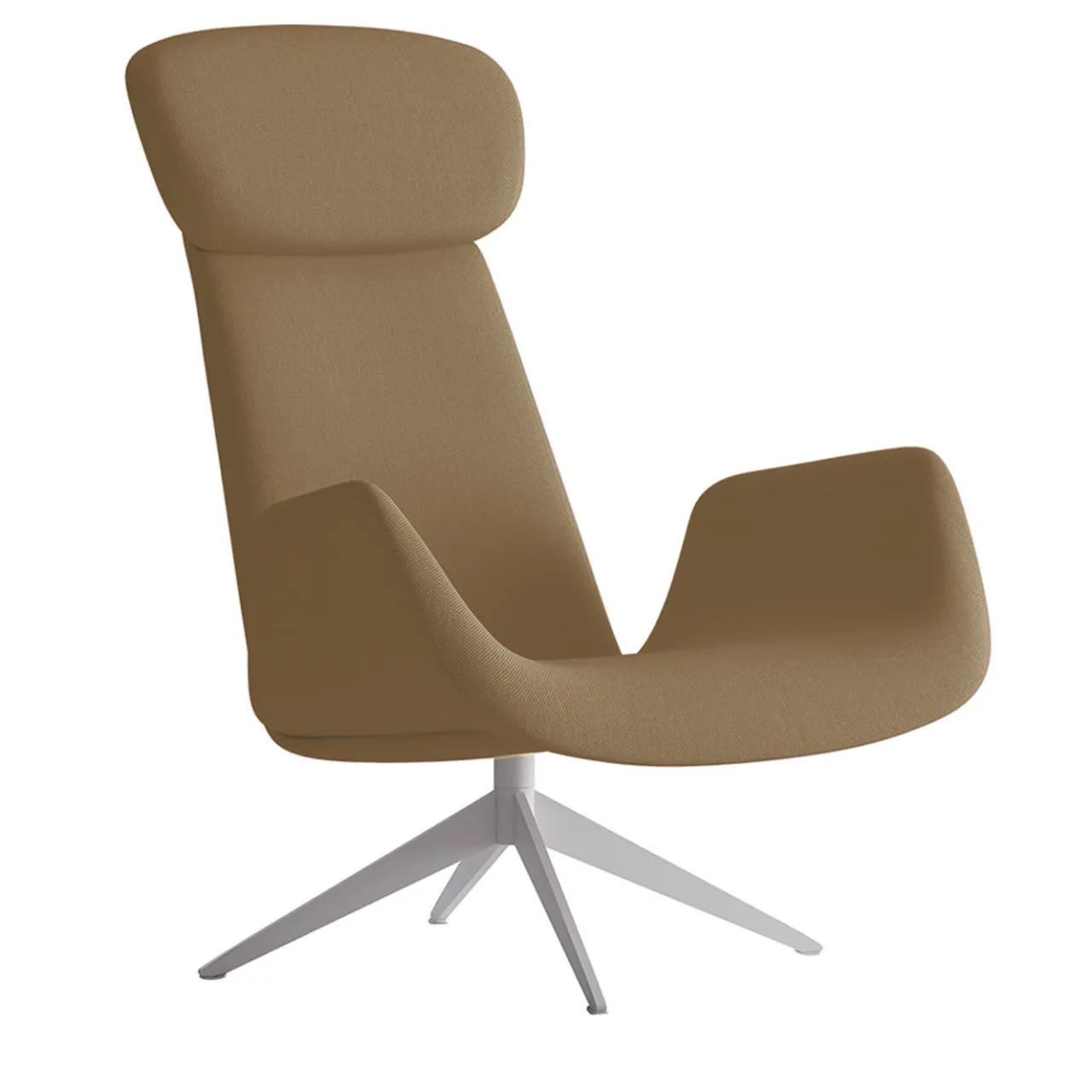 Questa sedia unica è realizzata in legno imbottito di poliuretano indeformabile con fibra di poliestere. La struttura poggia su una base girevole in metallo nero. Il rivestimento non sfoderabile è in lana spazzolata di colore marrone chiaro. Questa sedia altamente personalizzabile è disponibile anche senza braccioli e poggiatesta. È disponibile anche un’ampia scelta di rivestimenti di diversi colori, in tessuto o in pelle. Moderno ed elegante, questo pezzo può essere un’aggiunta sorprendente a qualsiasi stanza. Su richiesta, sono disponibili certificazioni per il settore contract e commerciale.