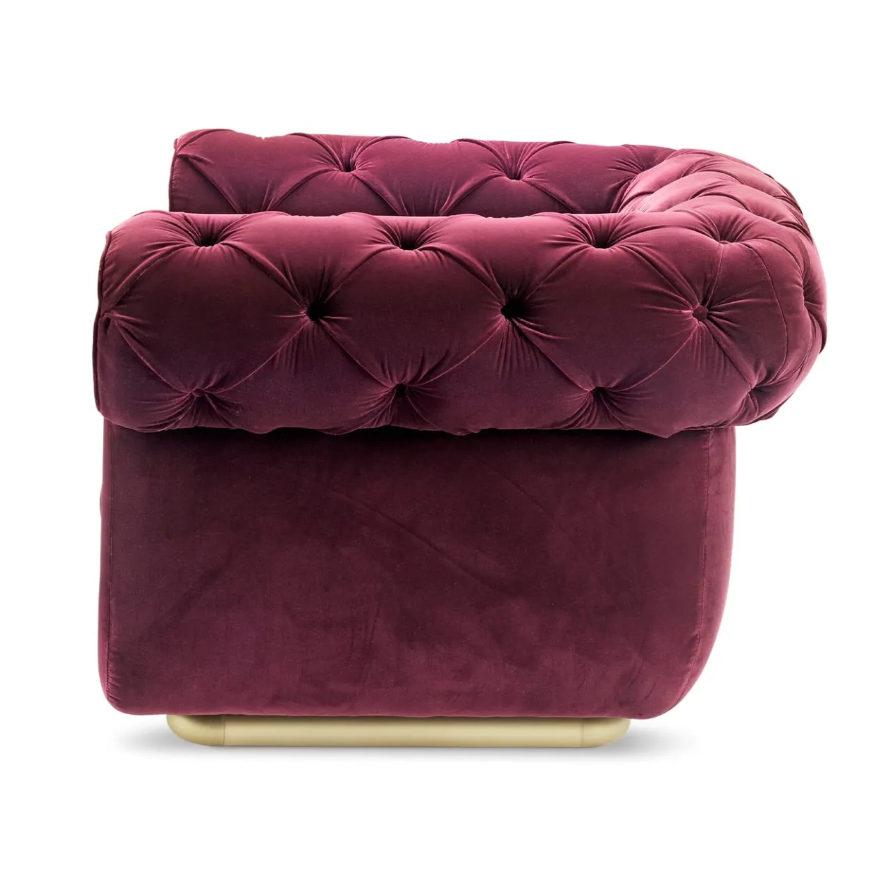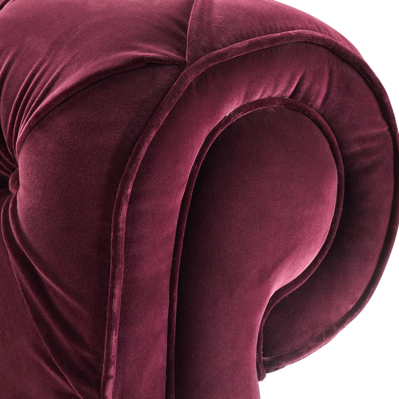 Gemma di impareggiabile artigianalità sartoriale, questa poltrona troverà la collocazione ideale in una camera da letto o in un salotto esclusivo, dove distillerà la sua personalità glamour. Riccamente imbottita e rivestita in tessuto vellutato color porpora, i volumi vellutati offrono un comfort eccellente, favorito dall’ampiezza della seduta e dal design avvolgente dei braccioli e dello schienale arrotolati, entrambi impreziositi da un elegante disegno a ciuffi. Per il mercato statunitense, contattare il Concierge per i tessuti certificati CAL TB 117.