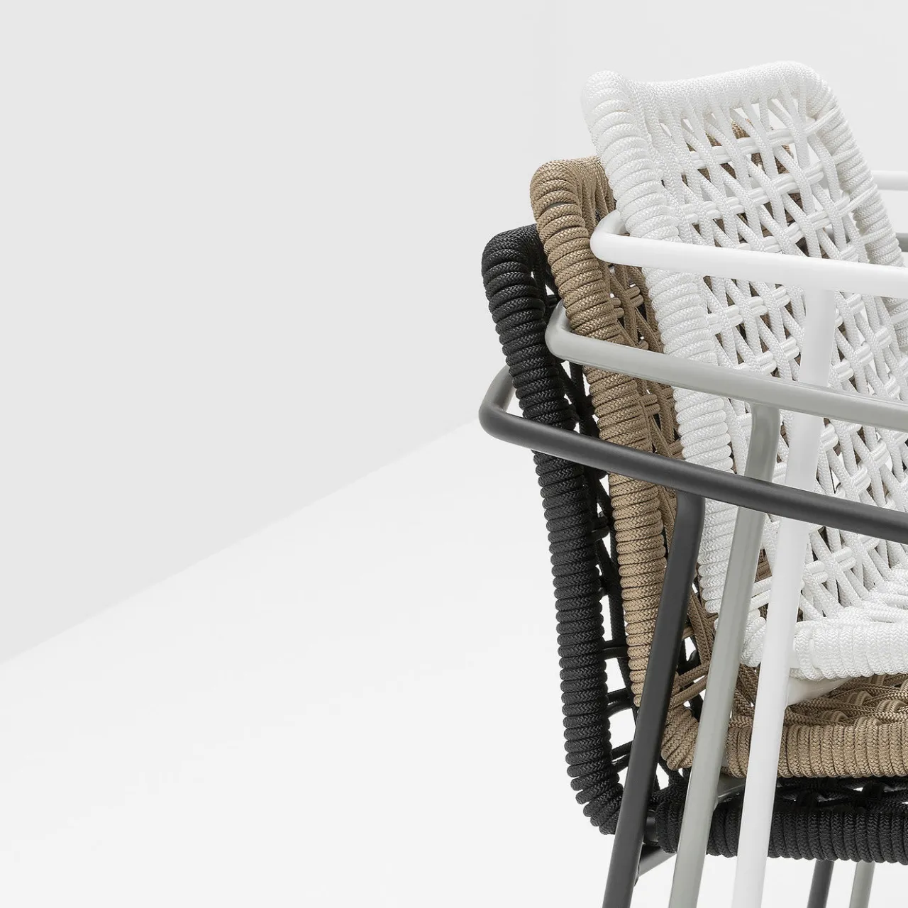 Disegnata da Emilio Nanni, la poltrona Sey Indoor Lounge è un’esibizione di forme e di design. Disponibile con struttura in metallo laccato nero (RAL 9017) e seduta e schienale in corda nera.