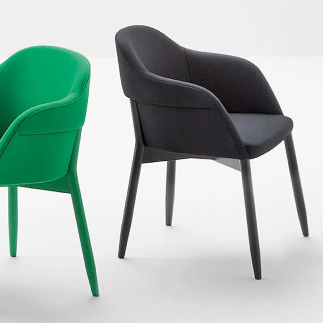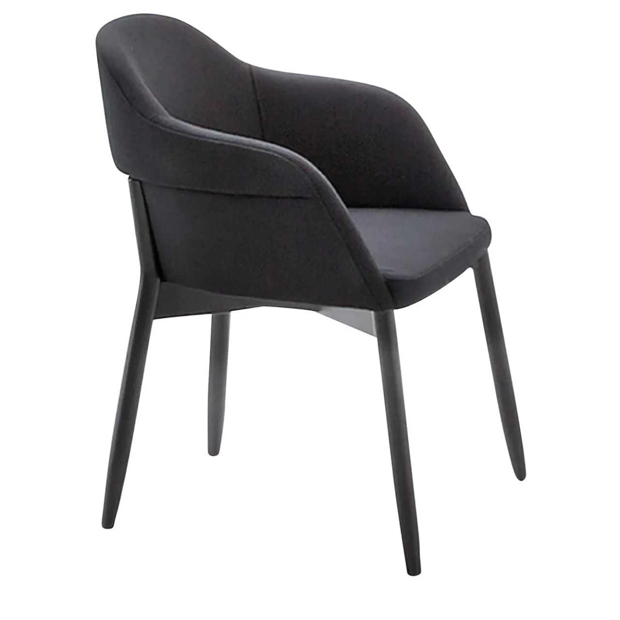 La poltrona Spy Black, disegnata da Emilio Nanni, è caratterizzata da una seduta ampia e accogliente, con schienale avvolgente e braccioli integrati, pensata per coniugare comfort e stile contemporaneo. La struttura, in elegante faggio laccato nero (RAL 9017), sostiene un guscio morbido rivestito in tessuto Flamenco 2545, donando alla poltrona un aspetto sofisticato e armonioso. Grazie alle proporzioni equilibrate e alla silhouette raffinata, si adatta perfettamente sia ad ambienti residenziali che contract, fondendo con naturalezza estetica e funzionalità.