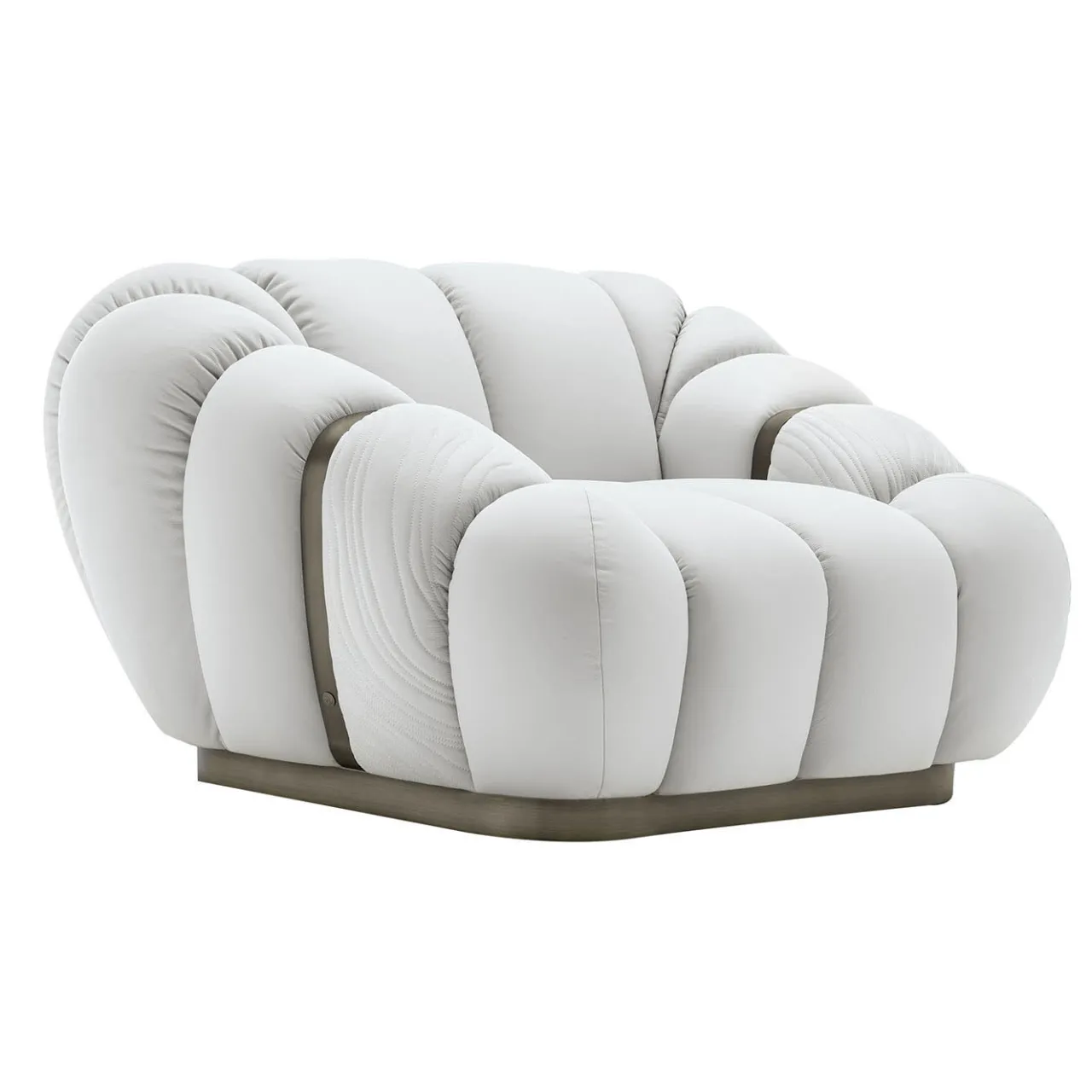 Questa poltrona occasionale di grande effetto presenta un rivestimento in velluto o in pelle scamosciata, meticolosamente realizzato con schiuma poliuretanica a doppia cucitura avvolta in piuma d’oca per un comfort ineguagliabile. I braccioli trapuntati e i contorni fluidi creano una silhouette morbida e invitante. La base in acciaio inox bronzato satinato aggiunge una raffinatezza contemporanea, completata dal marchio Giorgio Collection. Con un’altezza della seduta di 42 cm, è il perfetto connubio tra lusso e design moderno.