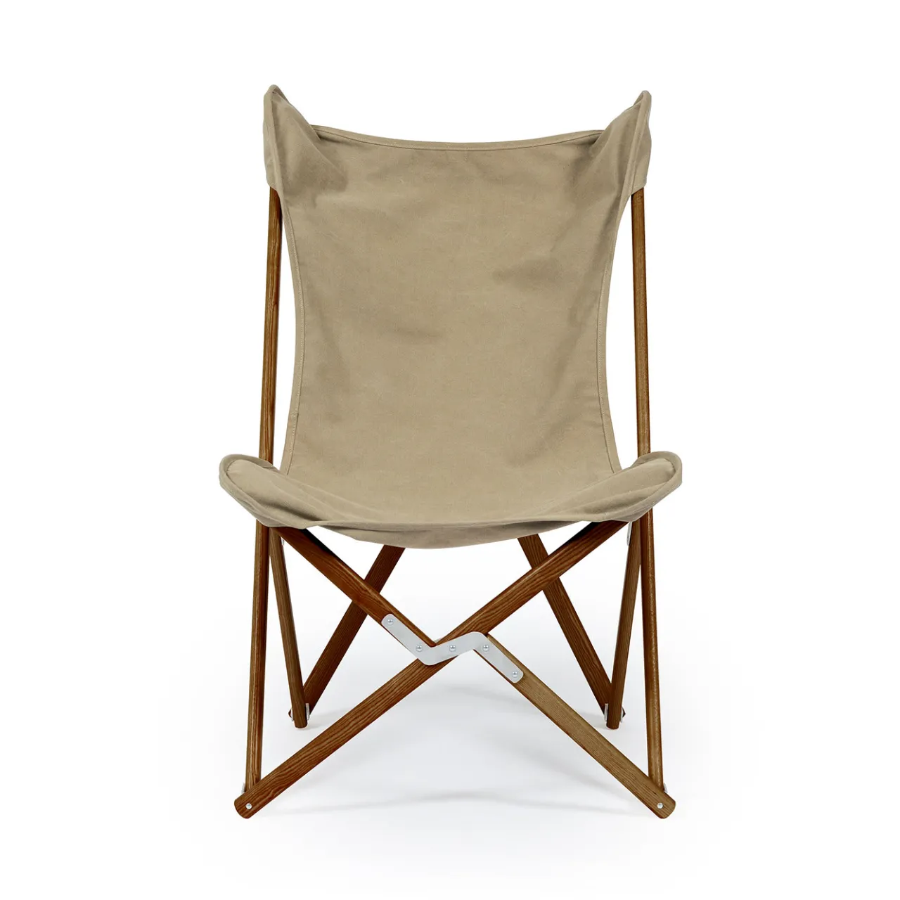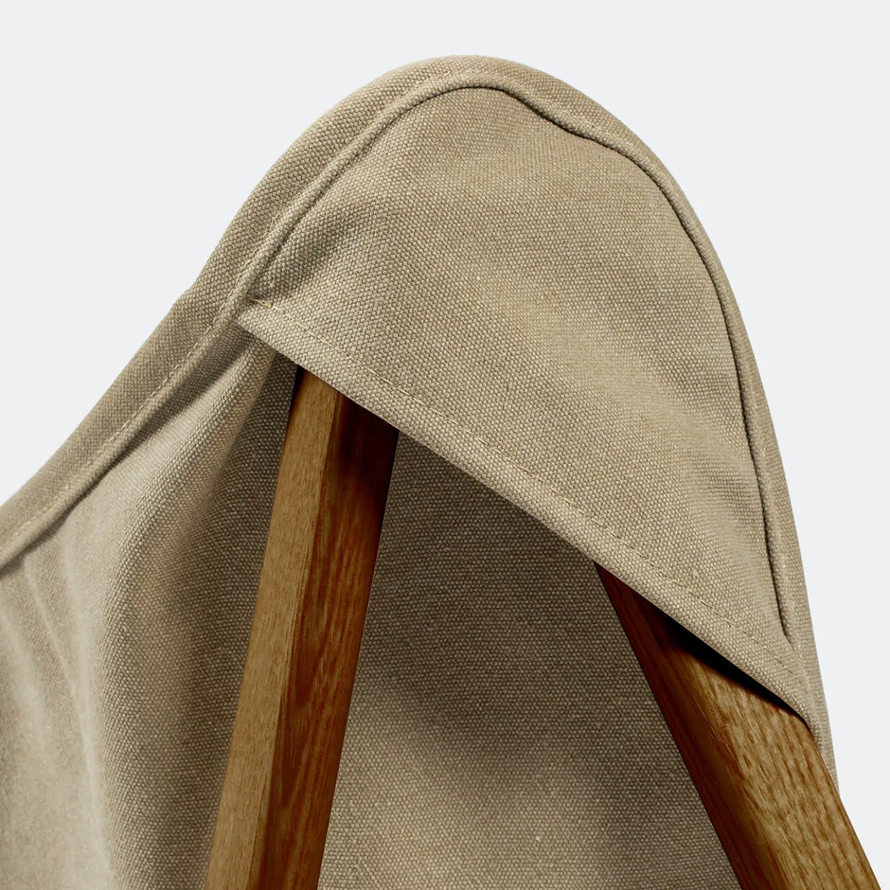 Questa elegante poltrona rappresenta un perfetto equilibrio tra rustico-chic e raffinatezza contemporanea. La sua silhouette iconica è un’interpretazione moderna dell’iconica sedia Tripolina. Disegnata nel 1885, questo pezzo fu originariamente realizzato per le truppe italiane dislocate in Libia, grazie al suo pratico meccanismo pieghevole e alla sua struttura robusta e confortevole. Questa sedia è realizzata a mano utilizzando il più pregiato frassino massiccio tinto in teak, che sostiene una seduta/schienale in una combinazione di 85% cotone e 15% poliestere, lavata a pietra per ottenere una leggera tonalità verde mimetico. La seduta è alta 32 cm.