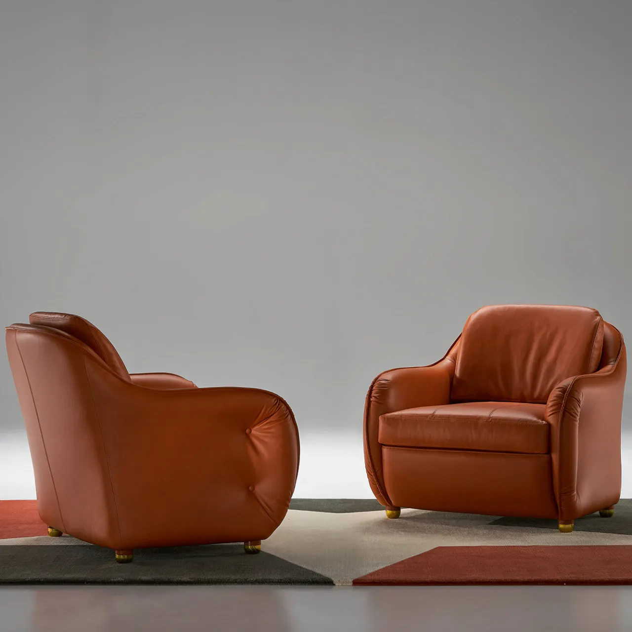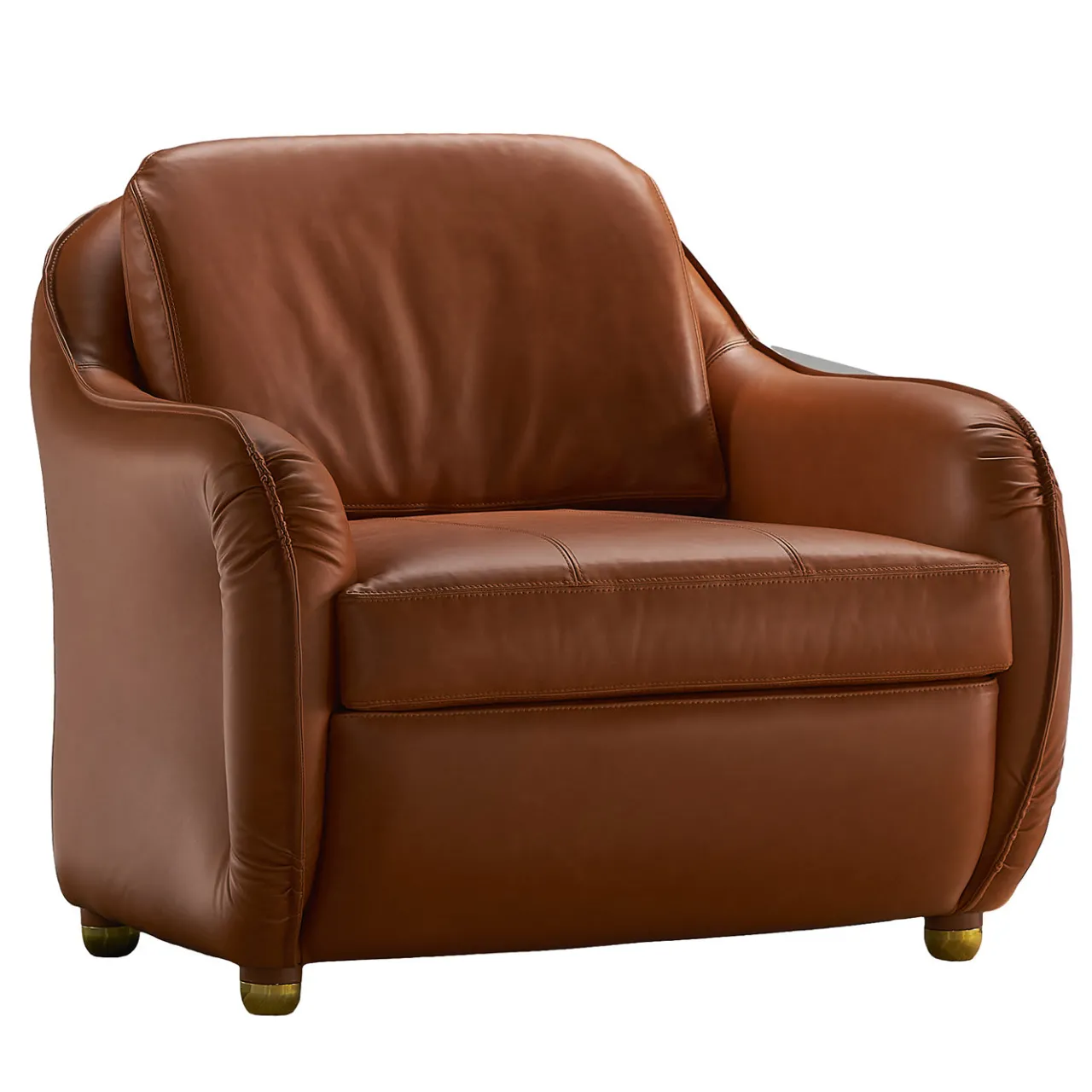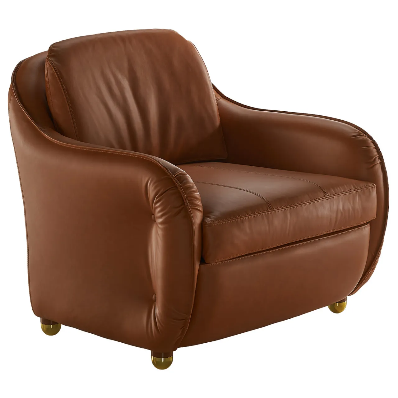 Parte di una serie esclusiva che riproduce una collezione storica disegnata da Carlo De Carli nel 1970-1975, questa poltrona emana il massimo comfort nella sua sofisticata silhouette vintage. Realizzata a mano, ha una struttura in ferro imbottita in poliuretano espanso (su richiesta anche in piuma) e rivestita in pelle marrone di prima scelta.