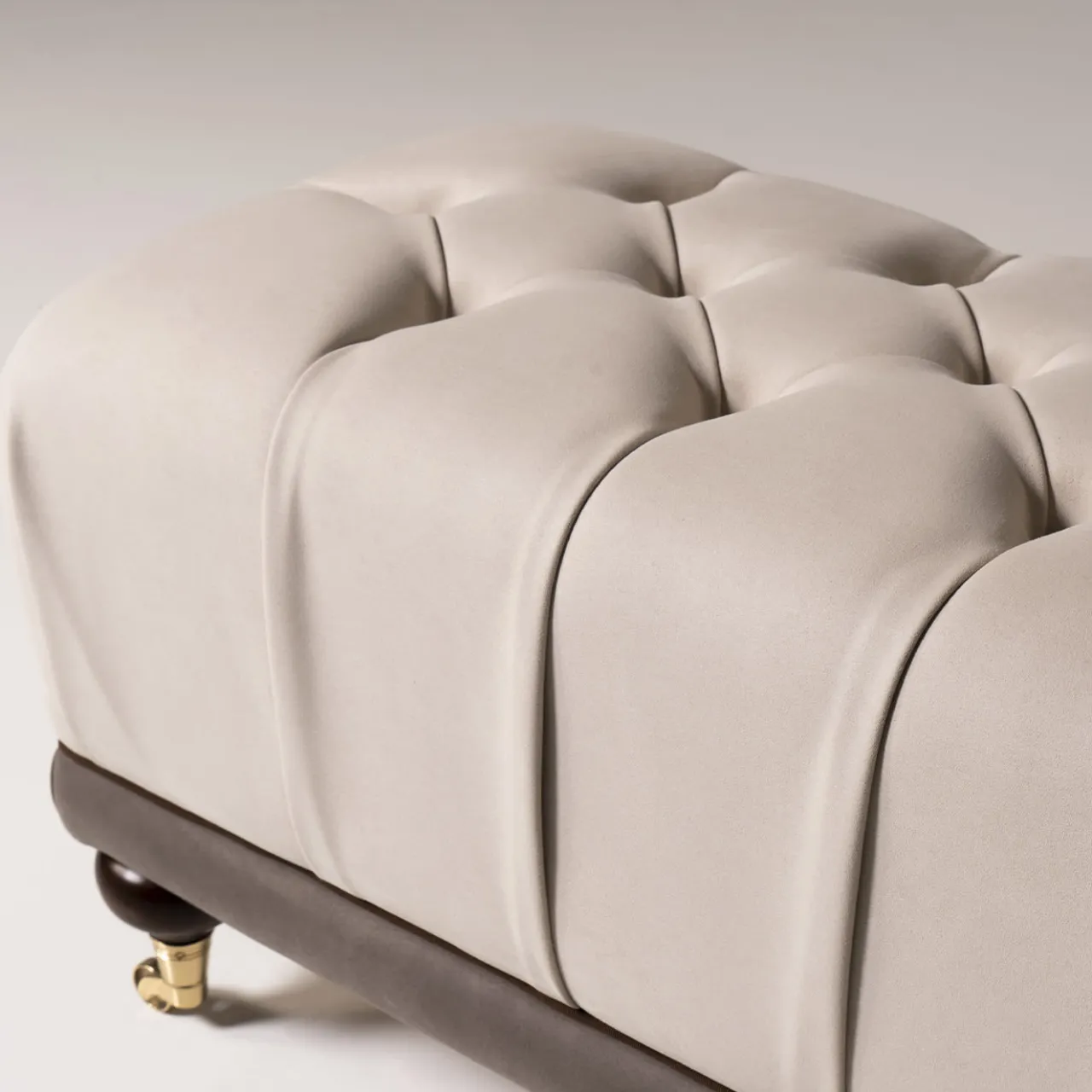 L’Ottoman Pouf, disegnato da Nicola Mantellassi, fa parte della Collezione Couture ed è caratterizzato da un’estetica interessante con accostamenti di tessuti a fantasia. Tutte le versioni di questo pouf hanno una base rivestita che enfatizza le proporzioni tra i volumi, creando un piacevole senso di proporzione. A seconda del rivestimento utilizzato, il risultato può essere uno stile glamour o un look tradizionale. Gambe con ruote in ottone.