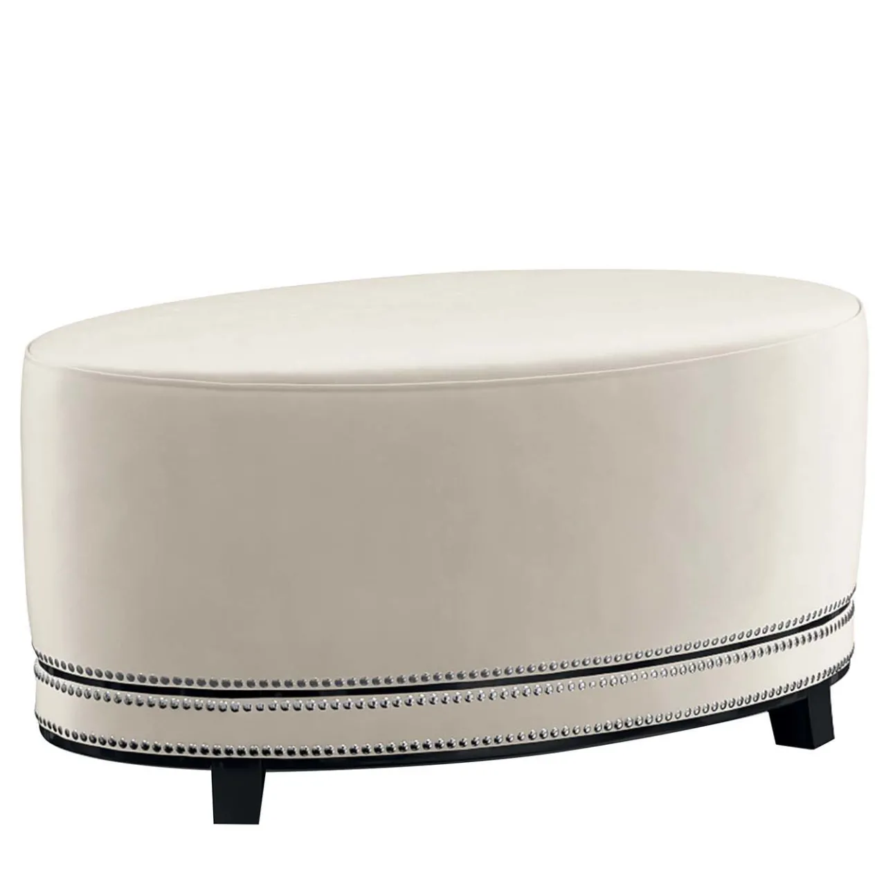 Un’aggiunta straordinaria a qualsiasi ambiente dal sapore squisitamente contemporaneo e cosmopolita, questo elegante Pouf imbottito della Oscar Collection unisce tradizione e modernità con un design accattivante che utilizza elementi sofisticati di qualità eccezionale. Caratterizzato da un tessuto bianco immacolato e da dettagli in foglia d’argento, il risultato è un pezzo notevole che vanta un’esperienza artigianale e un gusto raffinato.