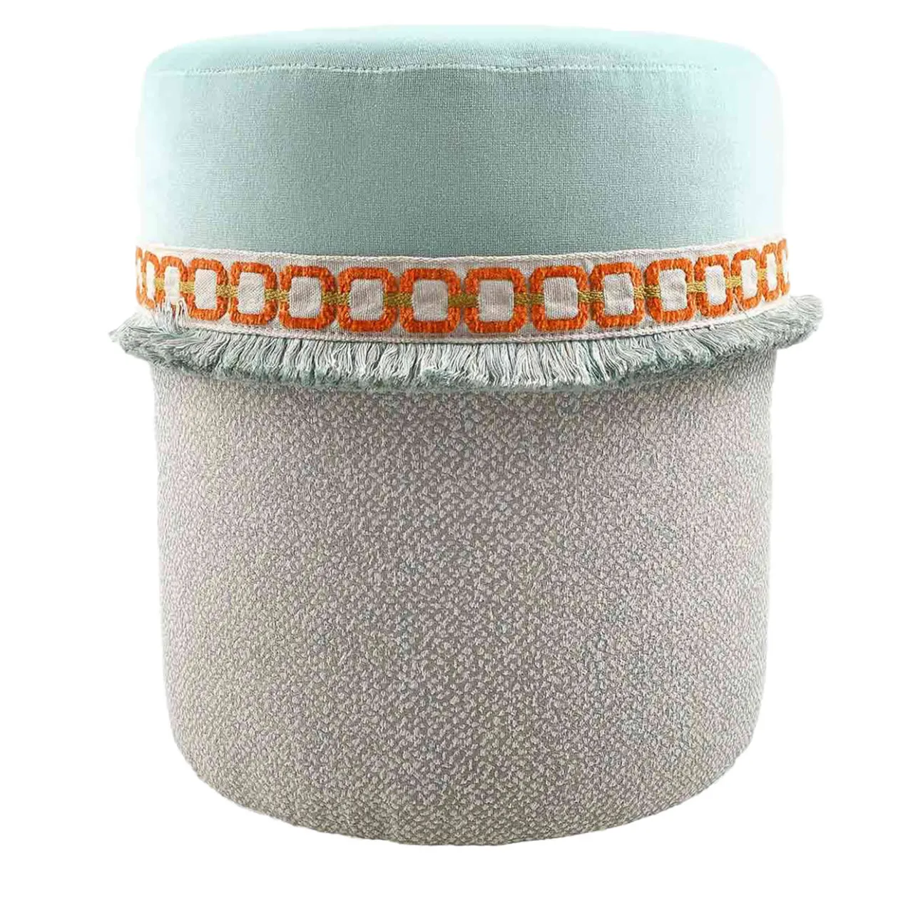Questo pezzo squisito fonde senza soluzione di continuità la passamaneria classica con il design contemporaneo, presentando splendide variazioni ispirate alla vivacità degli anni ’70, tra cui l’accattivante motivo del drago orientale. La sua struttura raffinata e leggera assicura comfort e stile, mentre l’uso di tessuti di alta qualità celebra l’eccellenza sartoriale. Ogni pouf è progettato con cura e dotato di imbottitura anallergica e di una comoda cerniera. Abbracciate l’essenza dell’eleganza moderna e dell’artigianato artistico con questo pezzo in edizione limitata, destinato a imporsi in qualsiasi arredamento.