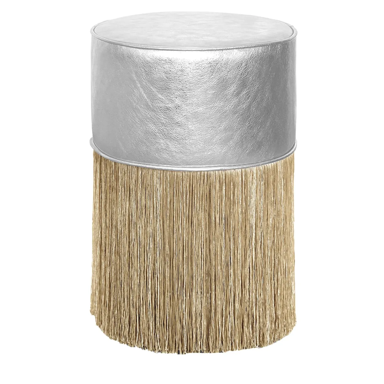 Pouf in pelle argentata con frange dorate di Lorenza Bozzoli*Lorenza Bozzoli Couture Best