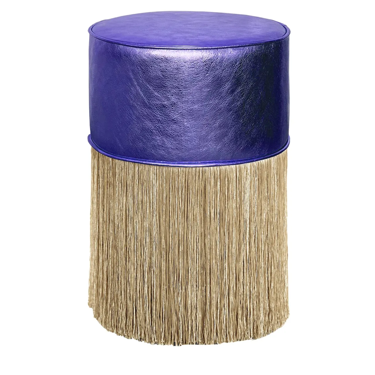 La collezione Gleaming di Lorenza Bozzoli Couture brilla di luce propria e cattura l’attenzione con la sua allure lucente. Le sedute dei caratteristici pouf con frange sono state avvolte da una pelle lucida e radiosa, accuratamente selezionata in diverse tonalità. Le iconiche frange sono proposte in oro. La collezione Gleaming è una fusione di lusso futuristico e design senza tempo, che crea un equilibrio tra eleganza classica ed estetica d’avanguardia. Ogni pezzo su misura è impresso sul fondo della fodera del pouf e firmato, numerato e datato personalmente dal designer.