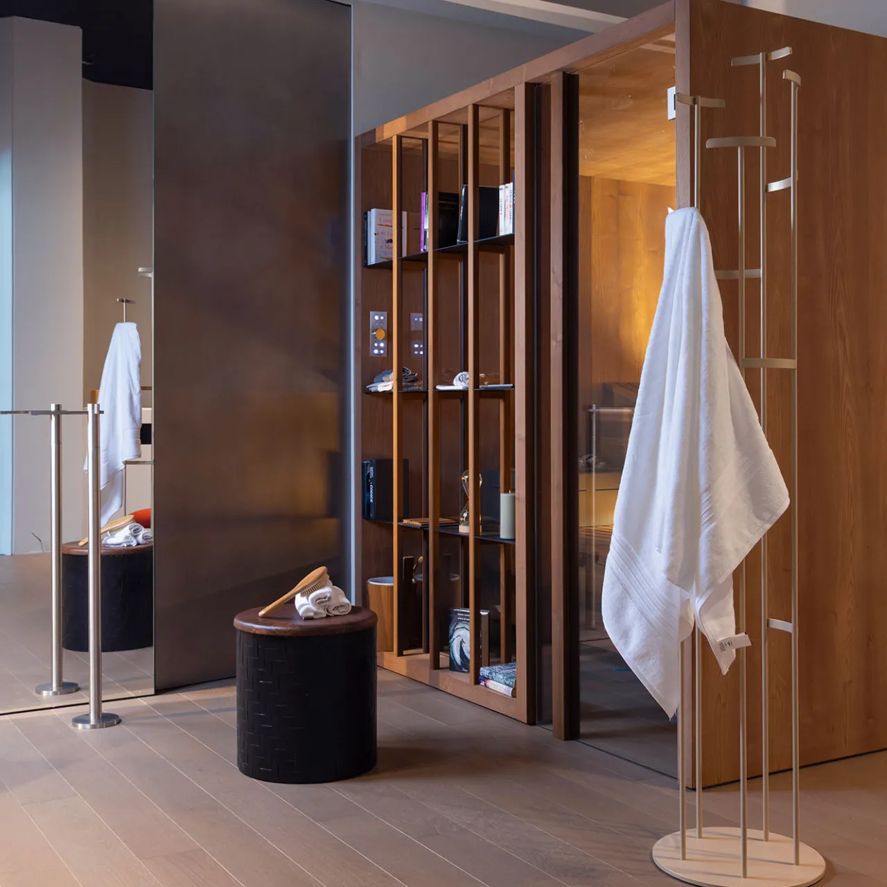 Questo pouf presenta un sedile in legno di noce massello con schemi di venatura distintivi, garantendo che ogni pezzo sia unico. Il design robusto trae ispirazione dalle torri fortificate medievali, rendendo omaggio al ricco patrimonio dei castelli emiliani. La sua base mette mostra un motivo intrecciato appositamente realizzato di elementi verticali e orizzontali, creando un effetto visivo dinamico. Con finitura in nero scuro, questo pouf fonde influenze classiche con un design moderno per un’aggiunta versatile a qualsiasi interno.