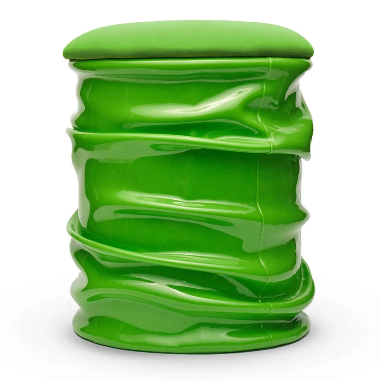 Caratterizzato da una vivace e lucida tonalità verde, questo elegante pouf combina funzione e stile in una silhouette singolare dall’accattivante fascino visivo e dal massimo comfort. Realizzato a mano in resina di alta qualità, è disponibile in una varietà di colori personalizzati e tessuti pregiati, che ne esaltano la forma fluida e armoniosa sormontata da un cuscino morbido e confortevole.