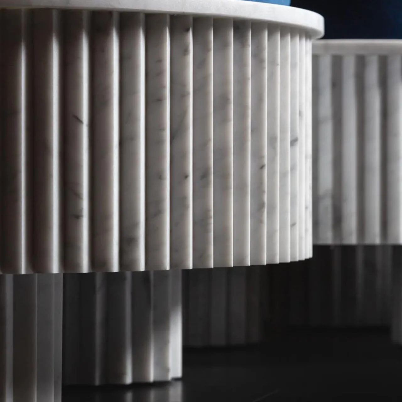 Elevate qualsiasi spazio abitativo con il pouf Small Spike, una sorprendente combinazione di materiali di lusso e design contemporaneo. Il pouf presenta una robusta base in marmo bianco di Carrara, meticolosamente realizzata con una finitura scanalata che aggiunge consistenza e raffinatezza. Coronato da una sontuosa imbottitura in velluto blu, questo pezzo invita al comfort e al tempo stesso si fa notare. Il suo design unico non solo funge da seduta chic, ma si trasforma anche in un elegante tavolino d’appoggio o in un poggiapiedi, aumentando la versatilità di ogni ambiente. Ideale sia per gli interni moderni che per quelli tradizionali, il pouf Small Spike è un’opera d’arte funzionale che combina eleganza e praticità, rendendolo un’aggiunta perfetta a soggiorni, salotti o zone salotto delle camere da letto.