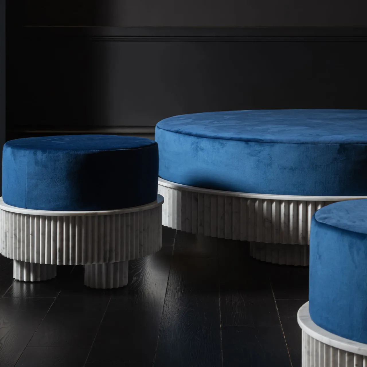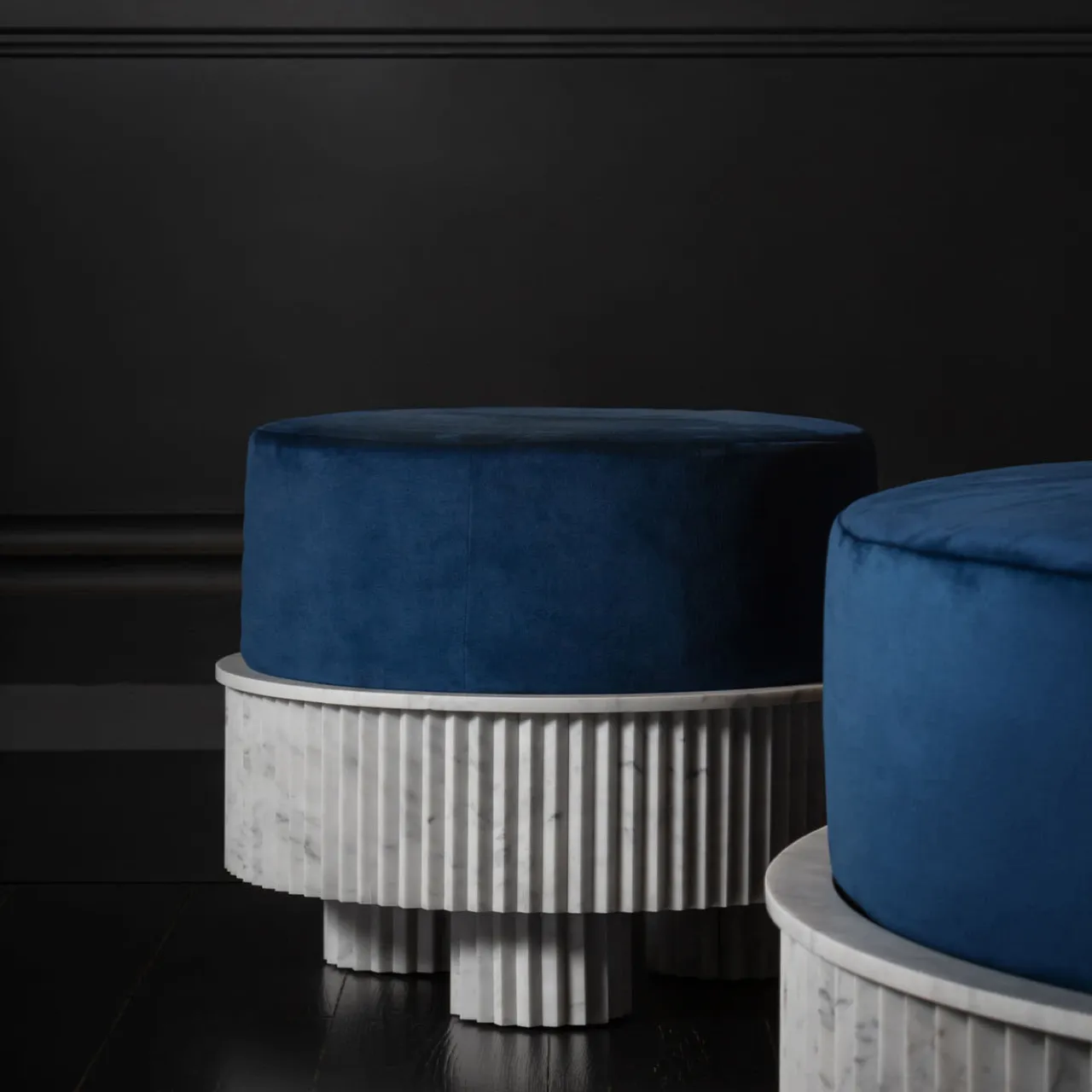 Pouf piccolo Spike in velluto blu e marmo di Carrara di Nick Maltese*Fuda Discount