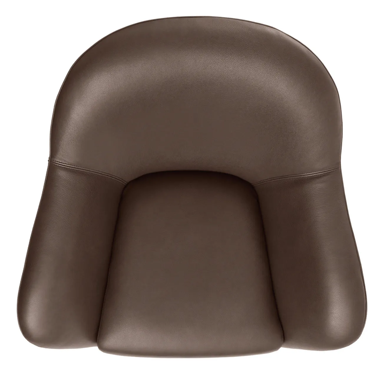 Perfettamente adatta a qualsiasi salotto moderno, camera da letto o area commerciale, questa splendida poltrona girevole sfoggia una silhouette di ispirazione anni ’50 realizzata con materiali nuovi e pratici. Rivestita in pelle marrone impreziosita da un elegante bordino, presenta un’accogliente seduta in multistrato di abete fissata con cinghie elastiche di 6 cm e un ampio schienale leggermente svasato in multistrato di pioppo curvato. Interamente imbottito in poliuretano espanso e memory foam racchiuso in una lastra acrilica, il pezzo è completato da una base girevole in metallo verniciato a polvere.