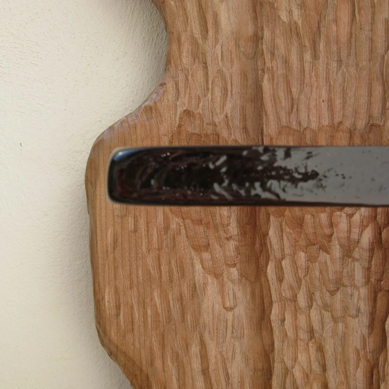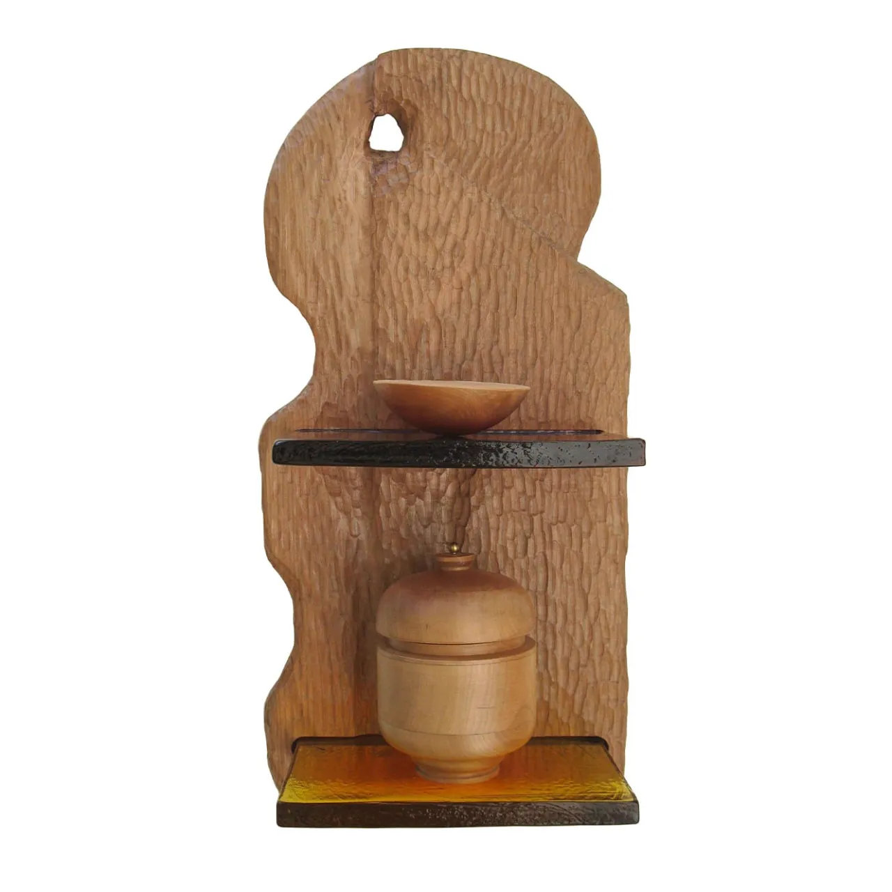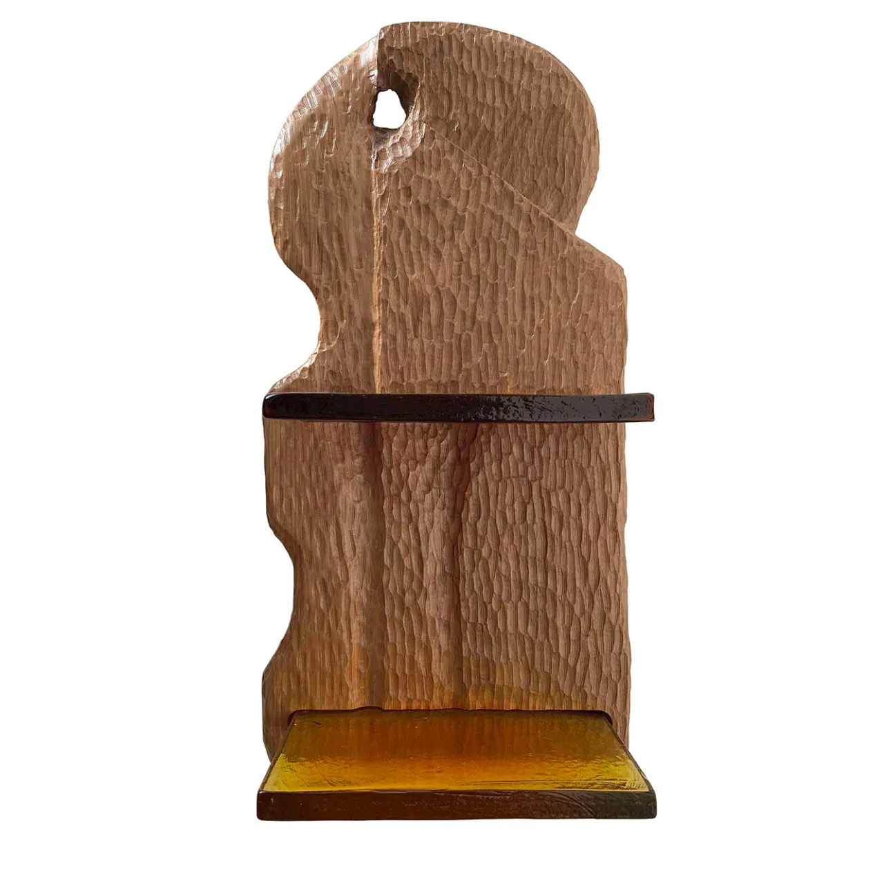 Scrupolosamente intagliato a mano, questo scaffale multiuso in ciliegio emana il fascino di un autentico oggetto d’arte. I profili volutamente irregolari ne esaltano ulteriormente l’aspetto artistico, mentre la coppia di ripiani in vetro rosso e giallo, realizzati a mano, ne suggeriscono l’uso pratico. Firmato dall’artista, ogni pezzo è assolutamente unico.
