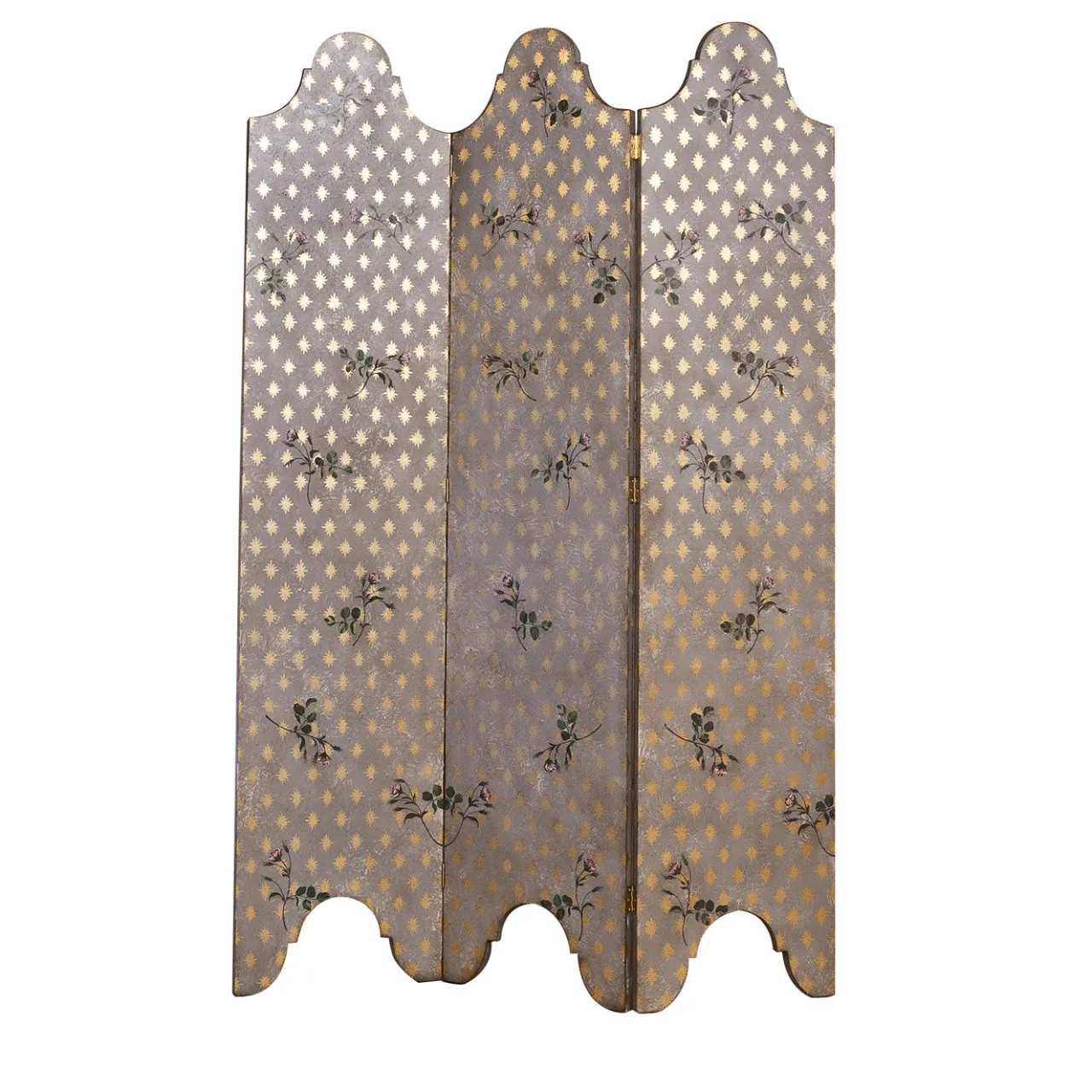 Questo affascinante paravento è realizzato in legno con un fascino vintage che si abbina a un arredamento classico o moderno, dove può essere utilizzato come divisorio o come punto focale puramente decorativo. I graziosi archi dei tre pannelli incernierati evocano l’immagine di finestre in stile veneziano, esaltata dal motivo dipinto a mano di stelle dorate su sfondo grigio intervallate da rose a stelo. Questo pezzo forte, unico nel suo genere in qualsiasi ambiente, è completamente personalizzabile per dimensioni, colore, motivo e numero di pannelli, in modo da soddisfare qualsiasi esigenza di arredamento. Contattare il Concierge per i dettagli.