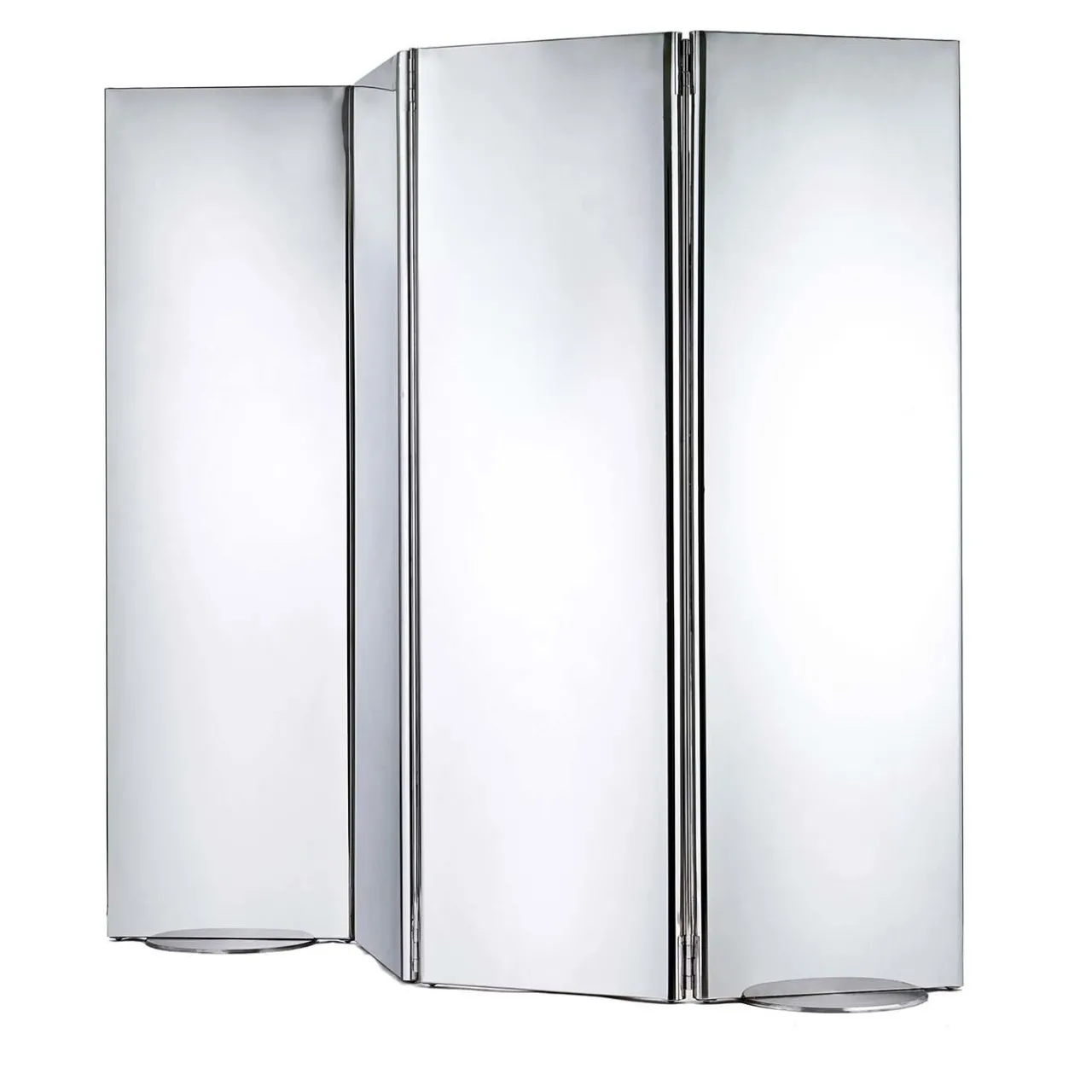 In perfetto equilibrio tra forme essenziali e versatilità, questo paravento ultramoderno si ispira a forme tradizionali reinterpretate in acciaio inox. I quattro pannelli rettangolari hanno una finitura a specchio che amplifica lo spazio con la sua luminosità e sono collegati tra loro da cerniere minimali in acciaio inox che poggiano su una piastra a pavimento satinata. Ogni pannello misura 24 x 6 x H 200 cm.