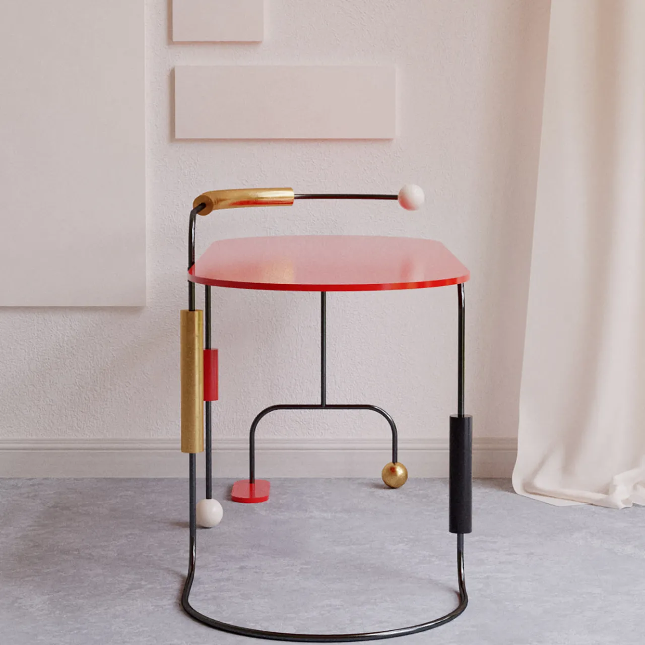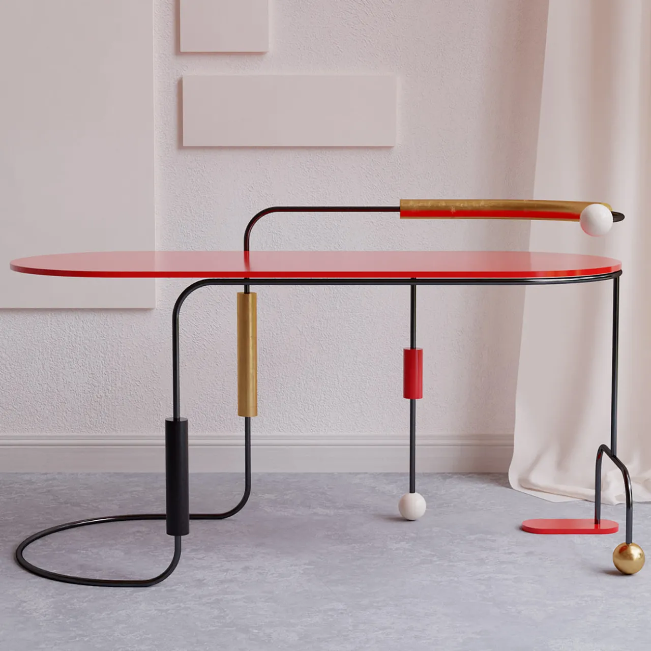 Questa scrivania scultorea deve il suo design eccentrico ai punti e ai trattini tipici del linguaggio Morse che dà il nome all’intera collezione. Colorata e dinamica, la sua silhouette asimmetrica con una struttura cilindrica in acciaio incorpora cilindri e sfere con accenti in nero, rosso, avorio o oro, oltre a un ampio piano rosso segnato da lati arrotondati.
