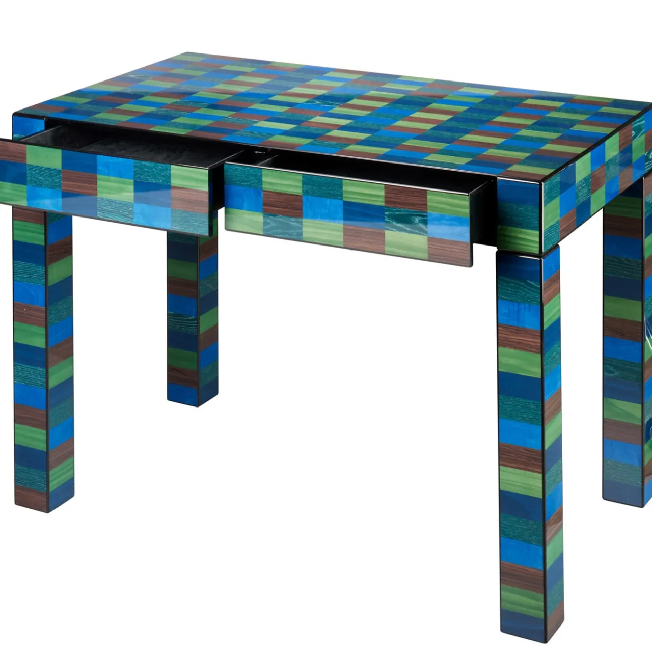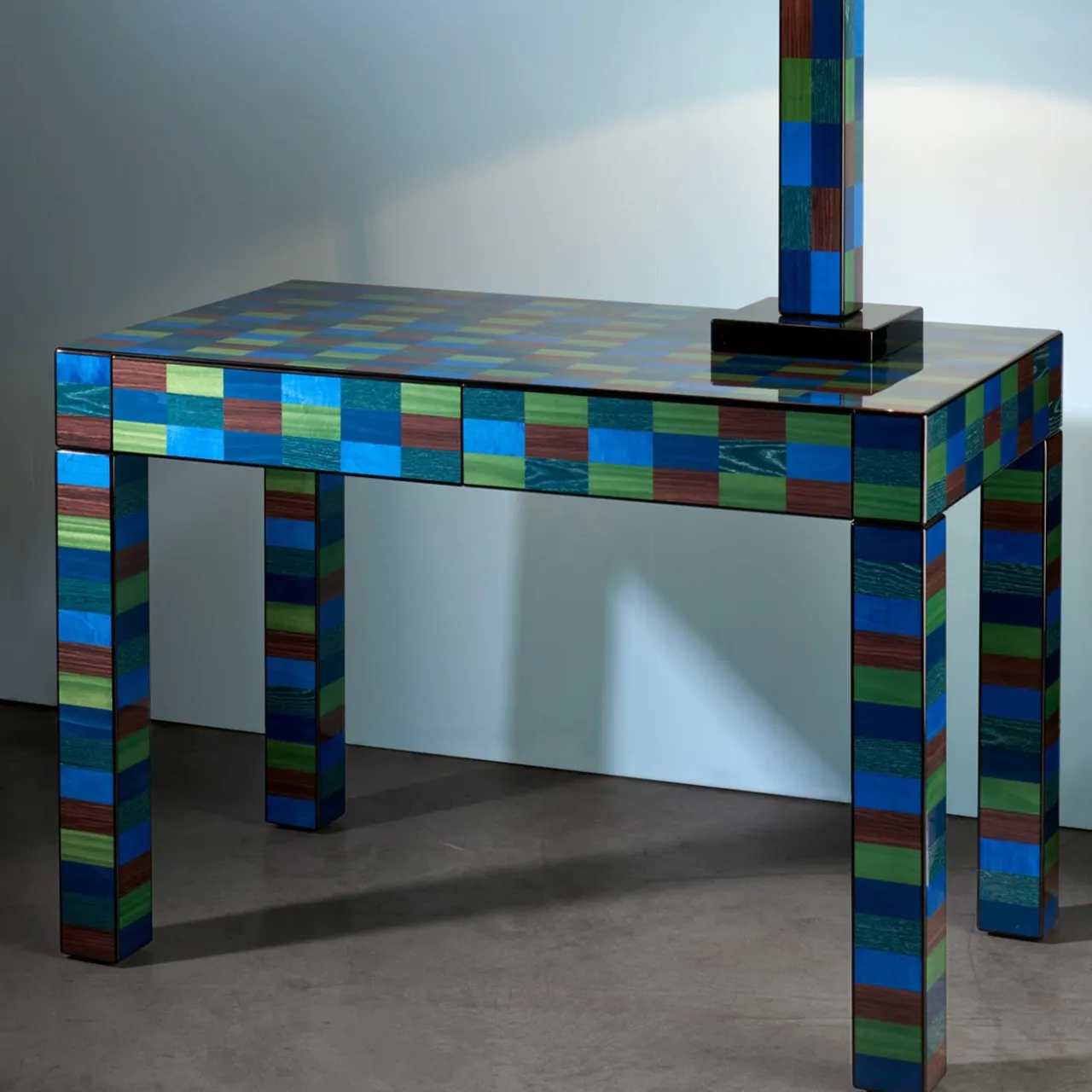 Questo scrittoio appartiene alla serie Venezia Mestre, ispirata all’omonima città nei pressi di Venezia, in Italia, e presenta un design di raffinatezza contemporanea e valore senza tempo. La forma pulita del legno, che mostra le venature naturali attraverso le finiture lucide e spazzolate a specchio, vanta un intarsio dipinto a mano in tonalità vivaci. Presenta due cassetti rivestiti in Alcantara nera. Disponibile in altri colori, consultare il catalogo Artemest per le opzioni.