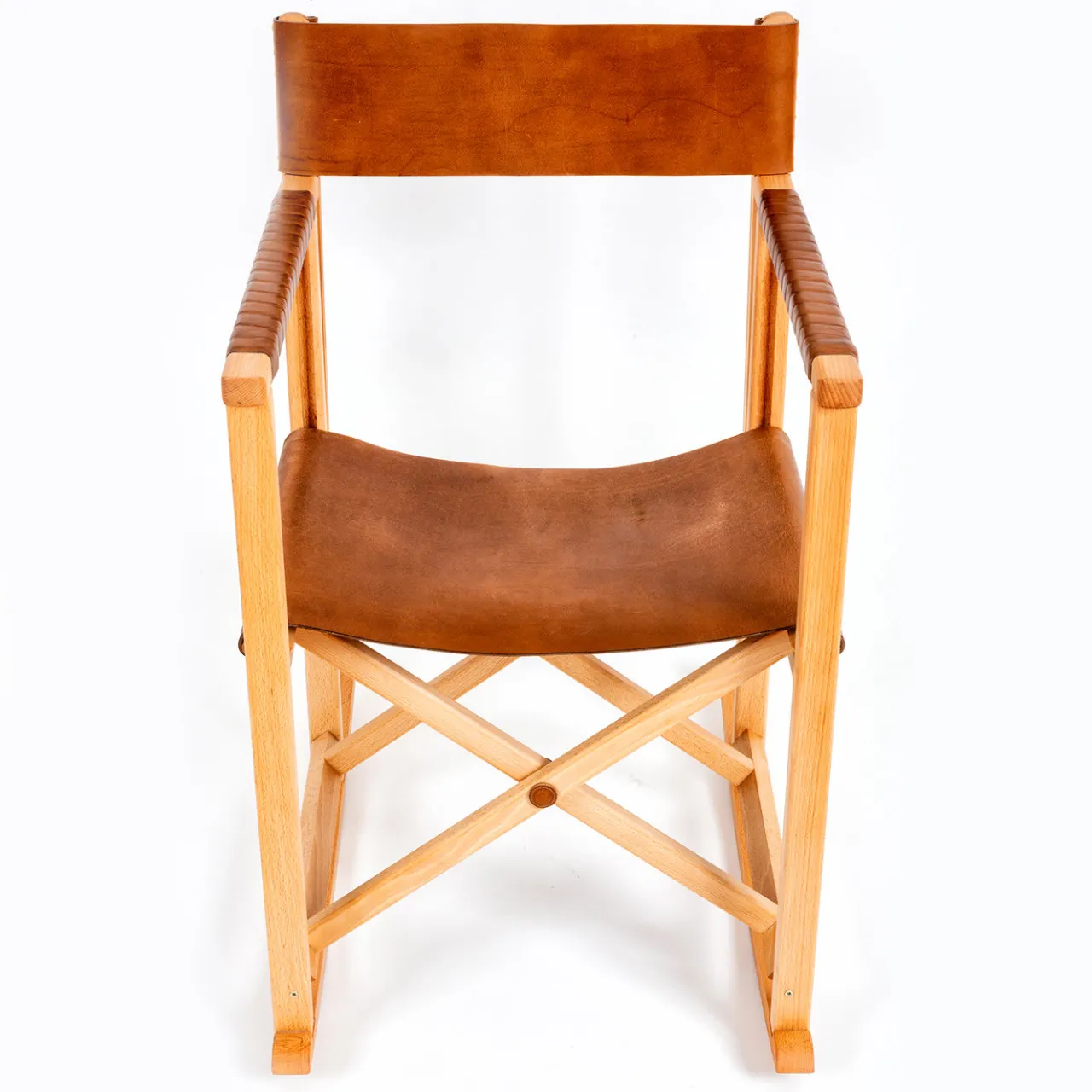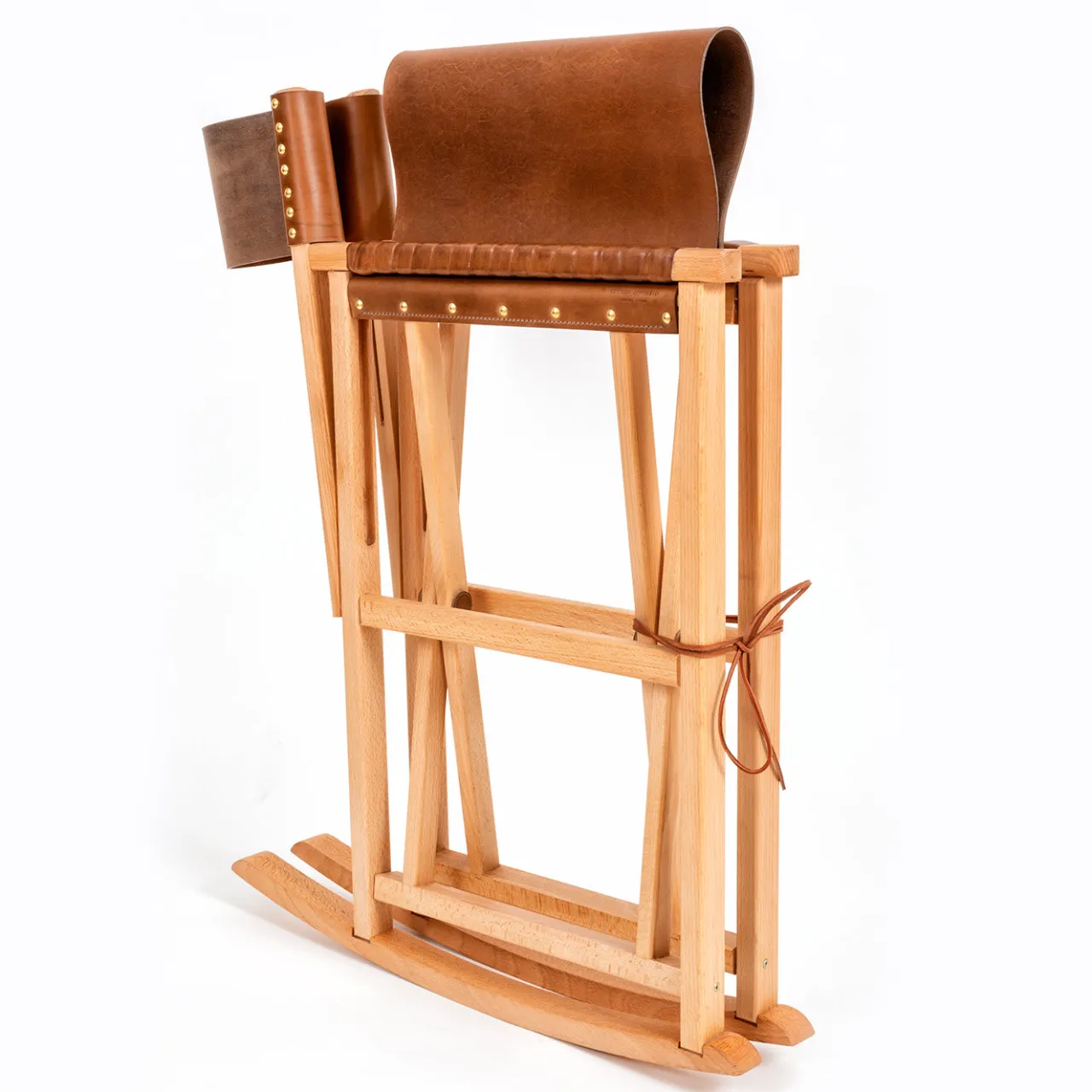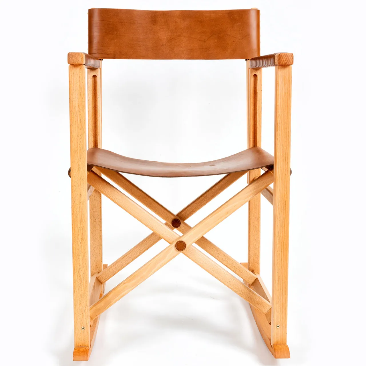 Esempio magistrale di design elegante e versatile, questa sedia a dondolo sfoggia una robusta struttura in legno di quercia con schienale e seduta (H 48 cm) in pelle pregiata, che riveste anche i braccioli lineari per offrire ulteriore comfort. Questa attraente poltrona invita a trascorrere momenti di puro relax, mentre il sistema pieghevole permette di riporla praticamente quando non viene utilizzata. Sono disponibili diverse opzioni di personalizzazione; chiedete al Concierge per i dettagli.