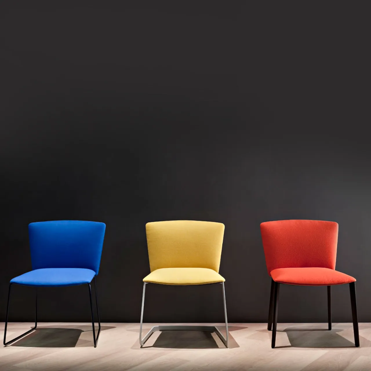 Compatta e minimale, la sedia Vela visitors con schienale basso è stata progettata nel 2014 da Lievore Altherr Molina per ambienti office, soft-contract e residenziali. La struttura in acciaio verniciato bianco con base cantilever sostiene una seduta rivestita in tessuto Europost giallo. Dotata di tecnologia “responsive” nascosta, si adatta al peso dell’utente offrendo comfort ergonomico e flessibilità d’uso, anche in home office.