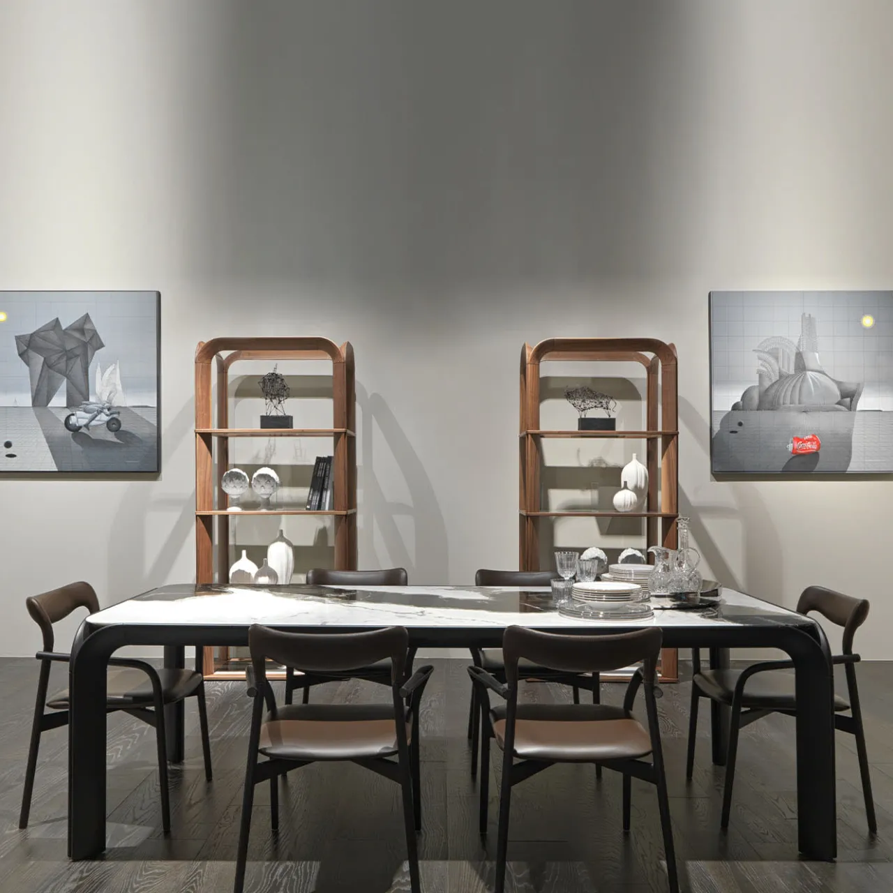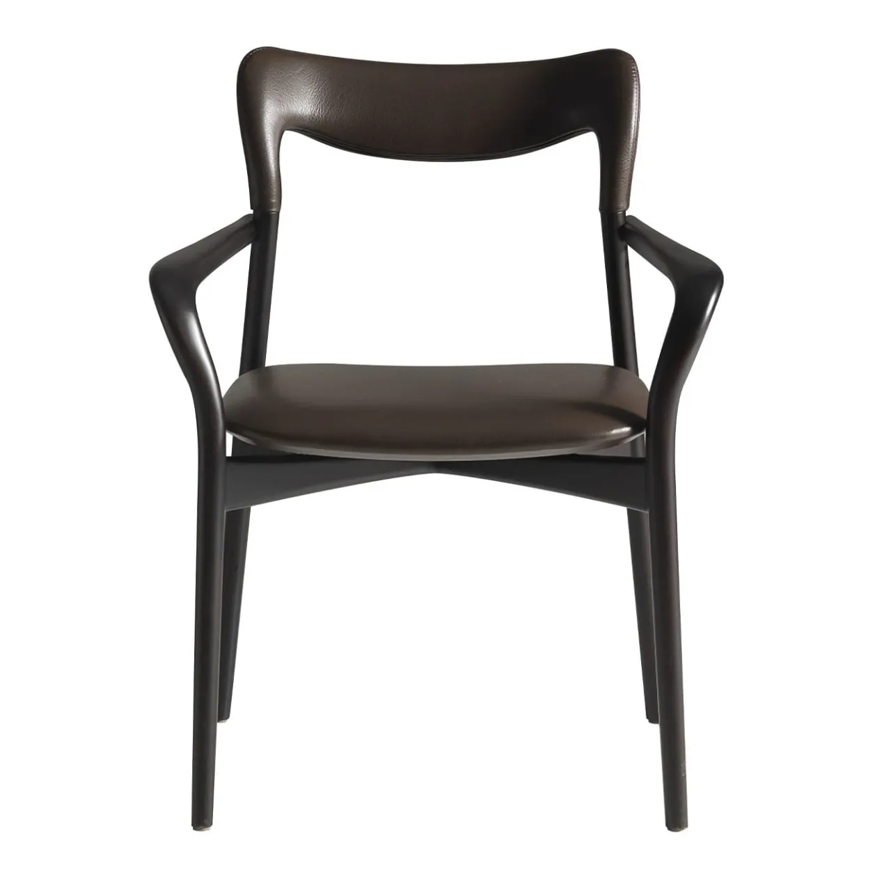 Profili fluidi realizzati in pregiato noce canaletto e interamente rivestiti in pregiata pelle scura EME Lena contraddistinguono questa sofisticata sedia. Ideale da riunire con i gemelli intorno ai tavoli da pranzo contemporanei per un prezioso tocco sartoriale, promette un comfort impeccabile grazie alla sapiente combinazione di linee ergonomiche, seduta imbottita e rivestimento in morbida pelle.