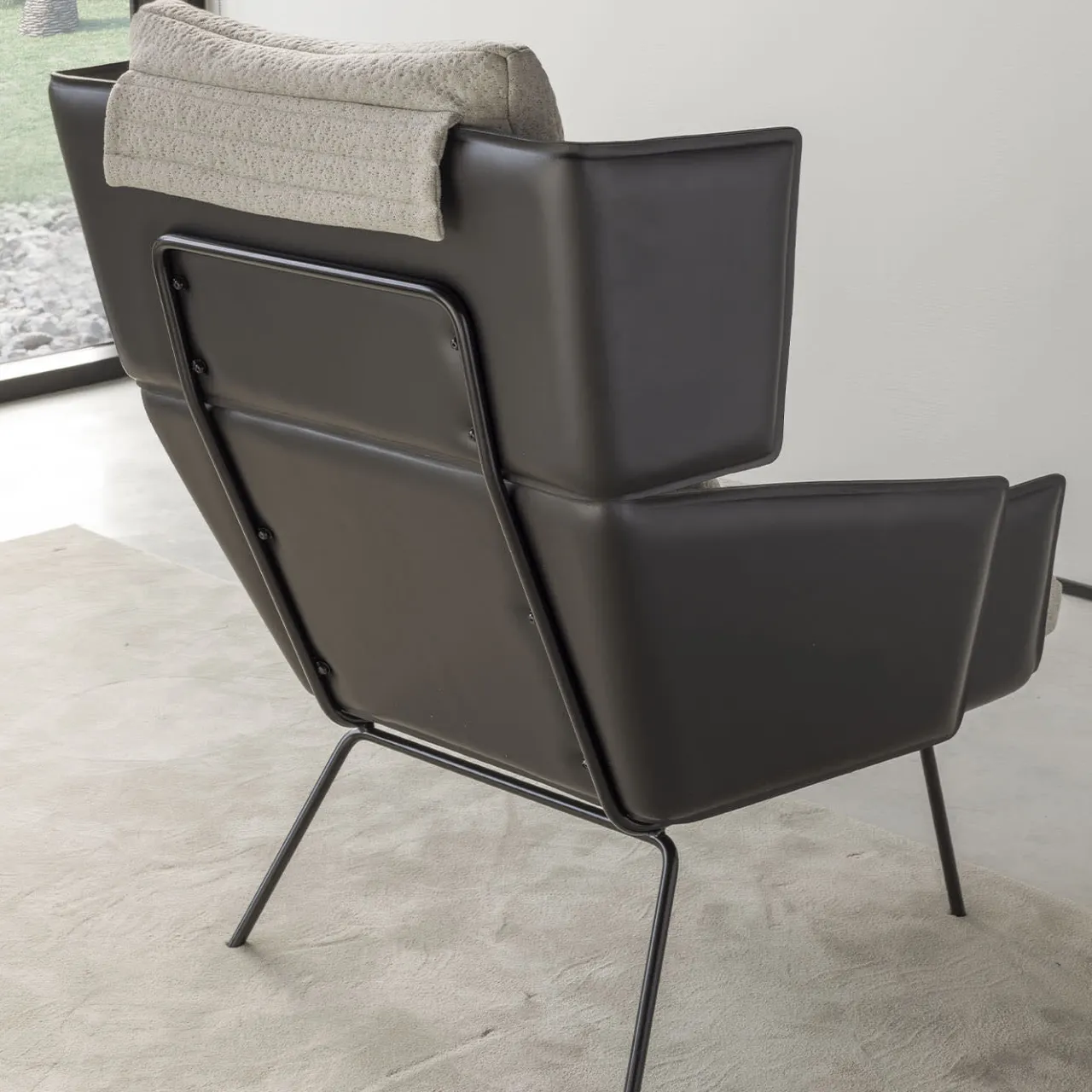 Caratterizzata da un design accattivante e da un’impeccabile lavorazione artigianale, questa poltrona alta in fibra di vetro, rivestita in pelle di lusso, incarna raffinatezza ed eleganza. Con una morbida seduta in schiuma ad alta densità, offre un comfort e uno stile impareggiabili. Disegnato da Palomba Serafini, questo pezzo fonde perfettamente forma e funzione, rendendolo un’aggiunta di spicco a qualsiasi spazio. I cuscini decorativi non sono inclusi nell’acquisto.