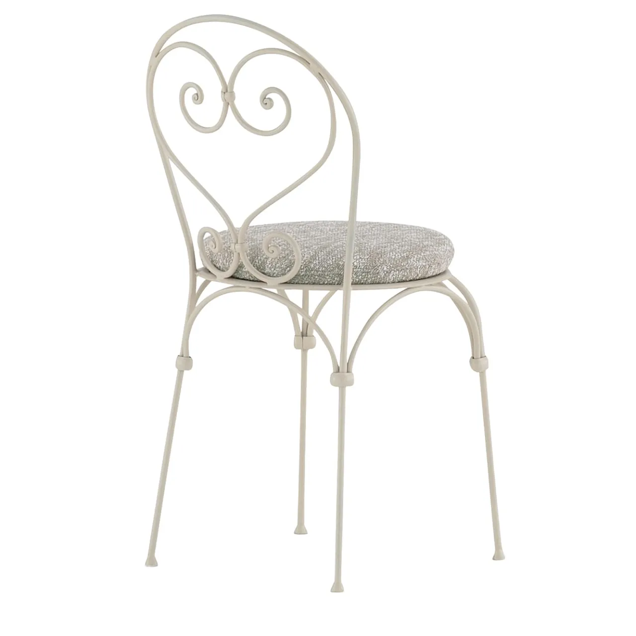 Profili femminili tracciati da curve armoniose conferiscono a questa sedia il suo caratteristico fascino romantico. Sicura di trovare la sua collocazione ideale in patii o giardini sofisticati, sfoggia una luminosa verniciatura a polvere di colore bianco che massimizza la resistenza agli agenti atmosferici della sua struttura in metallo zincato, segnata da vivaci riccioli che compongono lo schienale. Il cuscino della seduta, rivestito in tessuto Neve T405, invita a momenti di prolungato relax. Esplorate le varianti di colore con il Concierge.