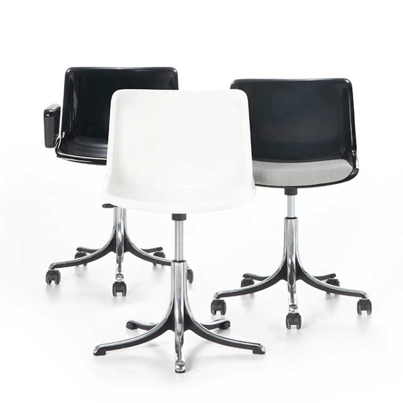 Dotata di un supporto avvolgente con sobri braccioli aperti e sedile/schienale ergonomico in poliammide nera, questa variante con rotelle del modello base Modus permetterà di spostarsi facilmente da un lato all’altro della scrivania, mentre si guarda brevemente fuori dalla finestra. Dagli spazi originali per la ristorazione agli uffici, questa seduta mobile sollevata su una base a cinque razze in alluminio pressofuso offrirà una piacevole esperienza di seduta.
