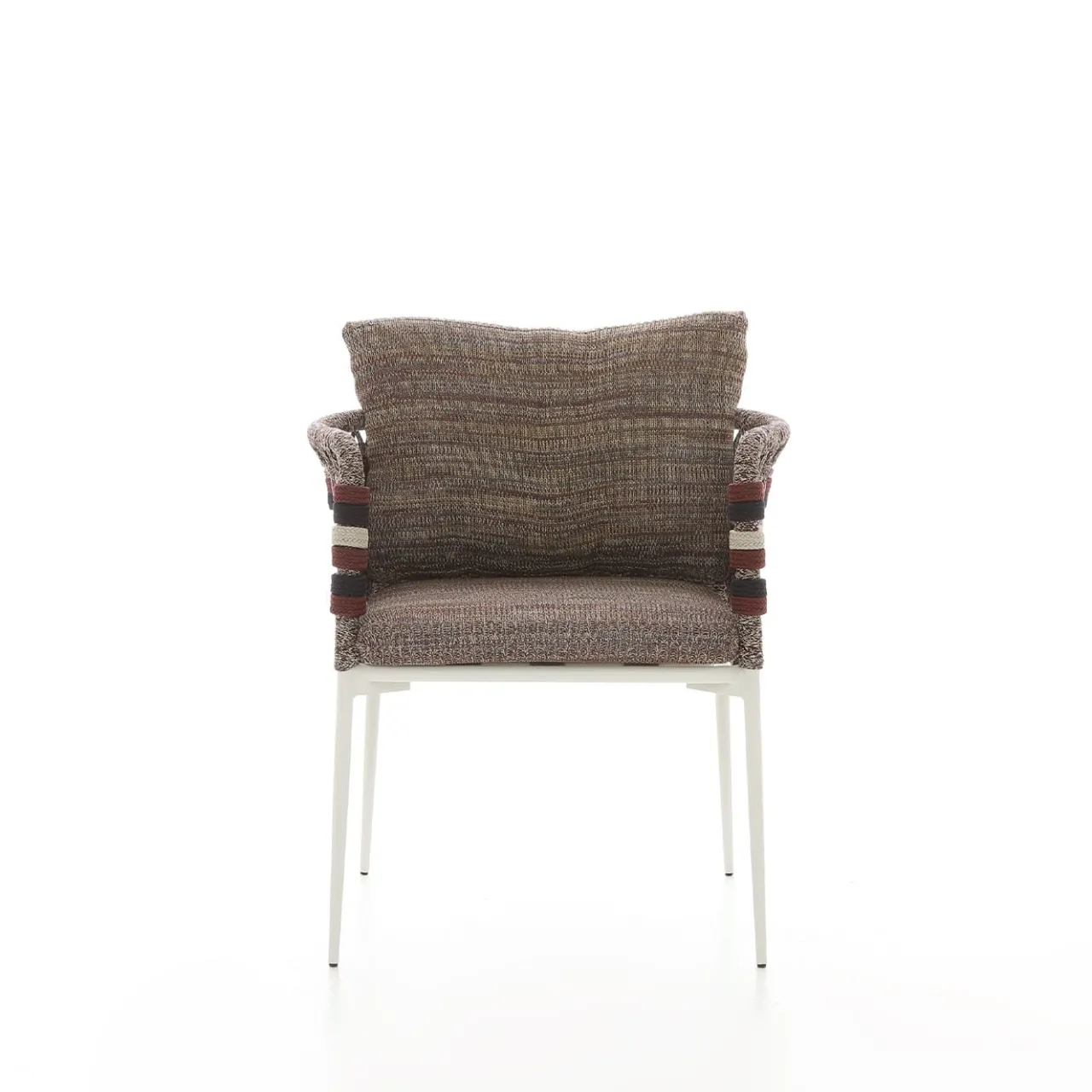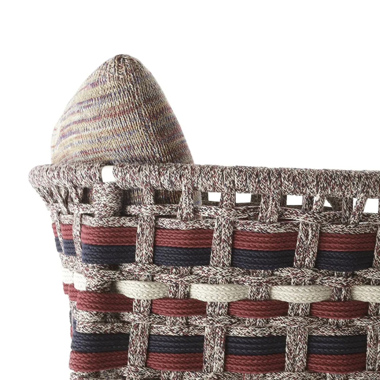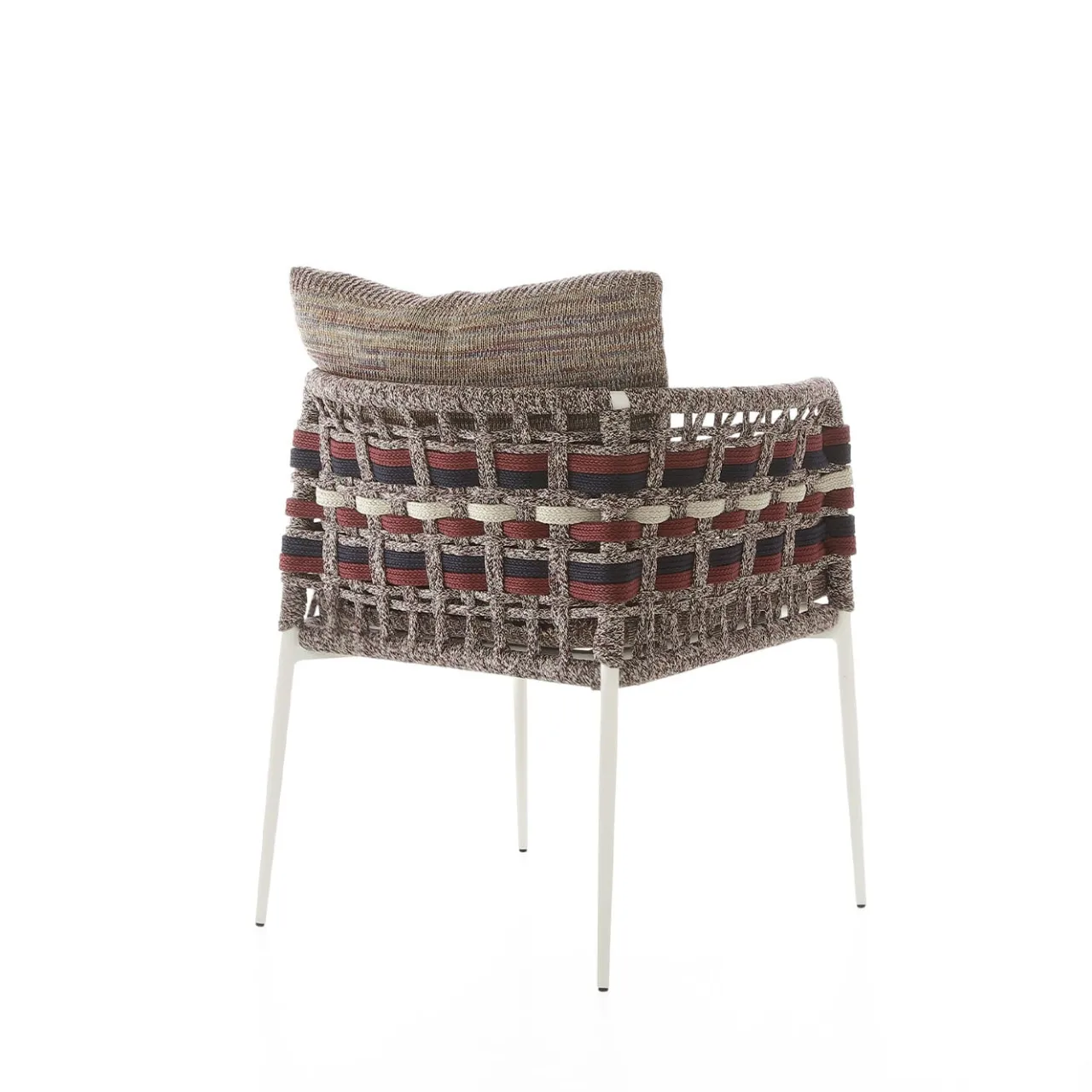 Il design unico e morbido della sedia della collezione Eva è perfetto per regalare squisiti momenti di relax, sia all’aperto che all’interno. Strutturata in alluminio verniciato a polvere e rinforzata con inserti in acciaio, lo schienale avvolgente e i braccioli sono interamente intrecciati a mano in corda con la combinazione di colori di Antonio Marras. I cuscini, progettati per garantire un comfort di seduta ottimale, sono realizzati con tessuti a maglia e conferiscono a ogni pezzo un aspetto contemporaneo e unico.