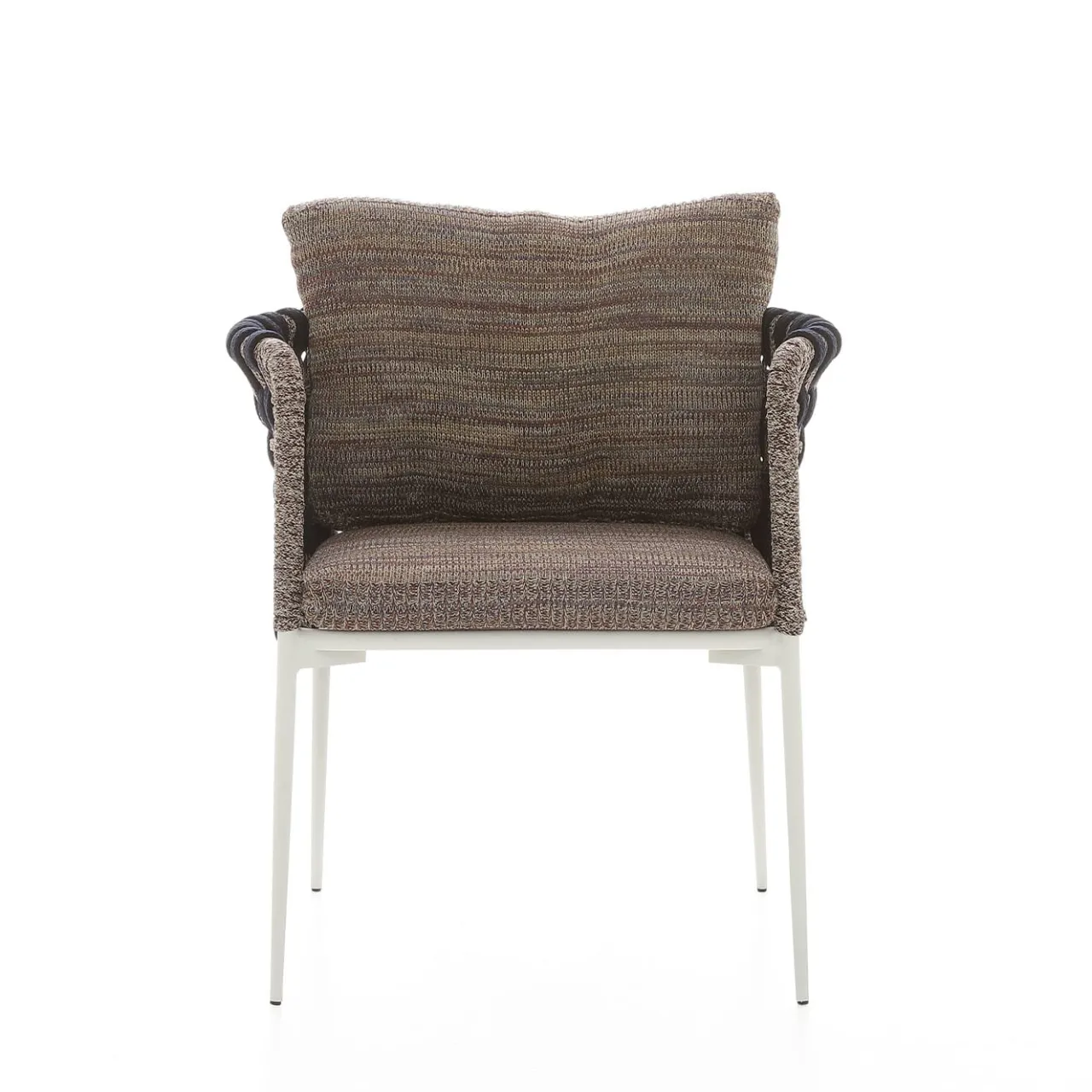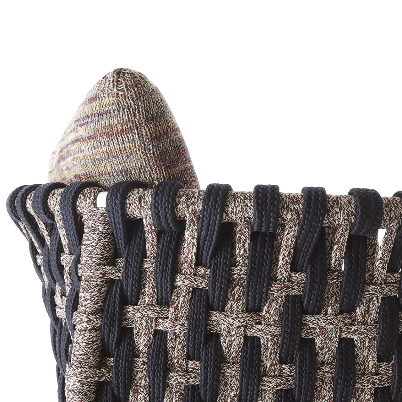 Il design unico e morbido della sedia della Collezione Eva è perfetto per regalare squisiti momenti di relax, sia all’aperto che all’interno. Strutturata in alluminio verniciato a polvere e rinforzata con inserti in acciaio, lo schienale avvolgente e i braccioli sono interamente intrecciati a mano in corda con la combinazione di colori di Antonio Marras. I cuscini, progettati per garantire un comfort di seduta ottimale, sono realizzati con tessuti a maglia e conferiscono a ogni pezzo un aspetto contemporaneo e unico.