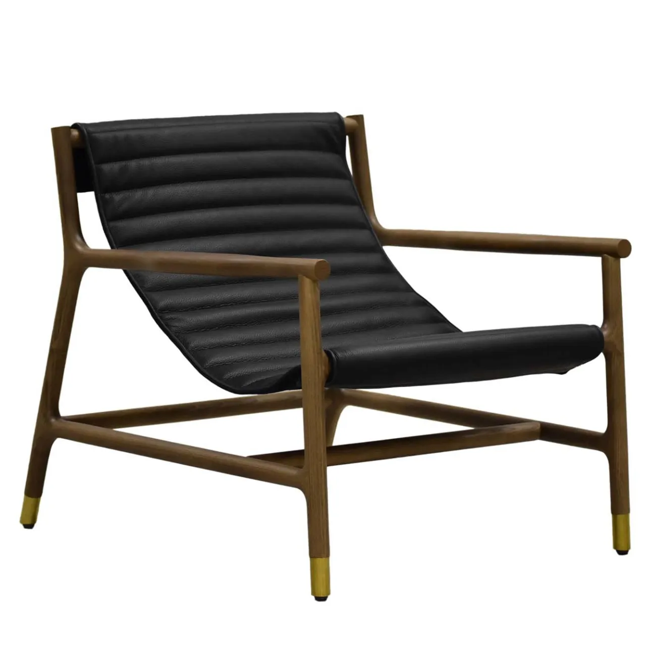 Una struttura squadrata e leggera in frassino massiccio sostiene l’eccezionale componente di questa esclusiva poltrona lounge. La sua seduta anatomica è rivestita in pelle trapuntata per offrire un’esperienza di seduta senza pari. Perfetto per rilassarsi, questo pezzo aggiungerà un accento eclettico agli arredi moderni. I piedi sono impreziositi da dettagli in ottone luminoso. Su richiesta, sono disponibili certificazioni per il settore contract e commerciale. Disegnata da Libero Rutilo.