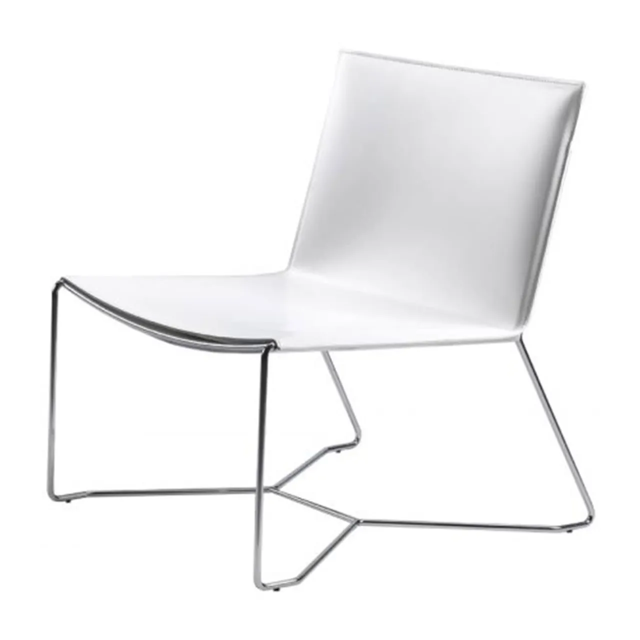 Sedia da salotto con seduta e schienale in synderme, rinforzato con un supporto non elastico. Una cerniera cromata sul retro serve in parte per motivi estetici, ma anche per staccare il rivestimento dalla struttura metallica. Telaio in acciaio cromato brillante.