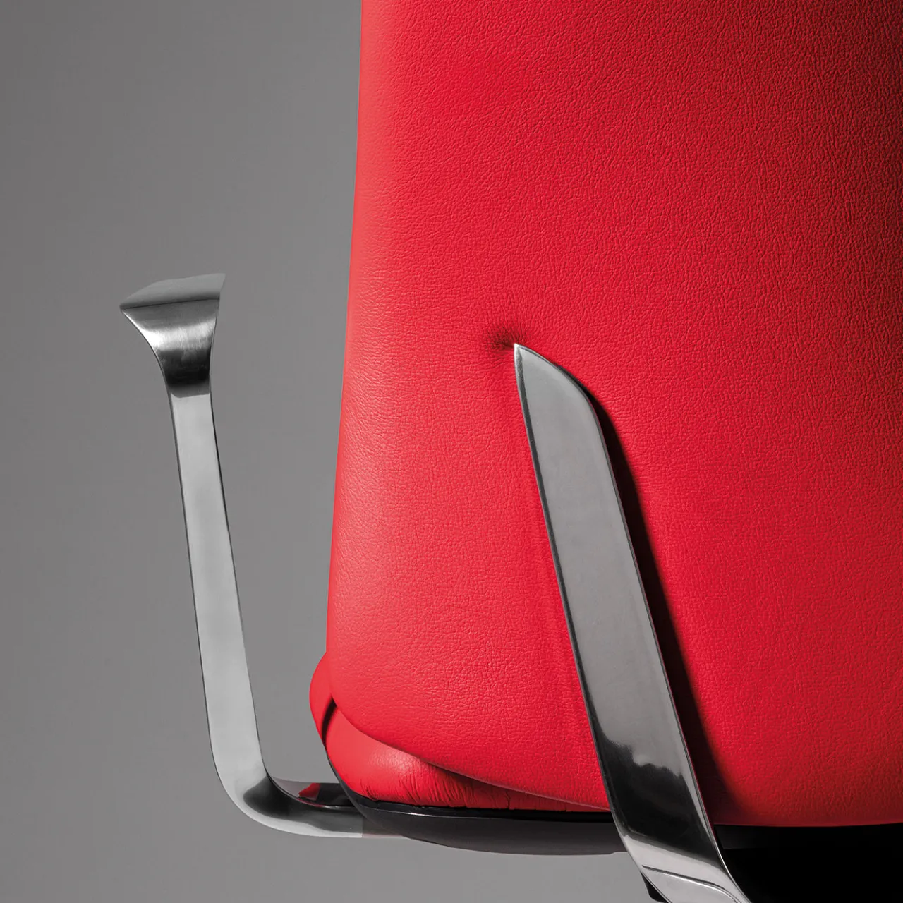 La sedia da ufficio girevole rossa Ikon 2 combina un design ergonomico con un’estetica raffinata per garantire comfort duraturo durante lunghe sessioni lavorative. La sua pelle di alta qualità offre una sensazione morbida e lussuosa, mentre lo schienale sagomato si allinea con la curvatura naturale della colonna vertebrale per promuovere una postura corretta. I braccioli in alluminio lucidato presentano un profilo elegante e minimalista che resiste all’usura. La base a cinque razze garantisce stabilità e migliora l’aspetto pulito e contemporaneo della sedia.