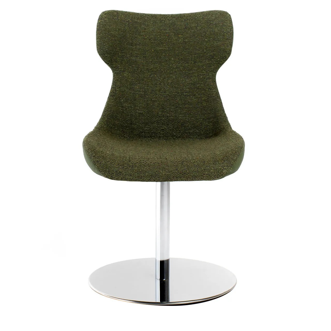 Il design raffinato della sedia Camila la rende un complemento perfetto per qualsiasi arredamento di casa o ufficio. Questo pezzo unico di arredamento è caratterizzato dalla giustapposizione di pelle e tessuto, entrambi in una nuance verde oliva opaco. Una base girevole in metallo laccato argento completa l’insieme. Il materiale e il colore della base e del rivestimento sono completamente personalizzabili.